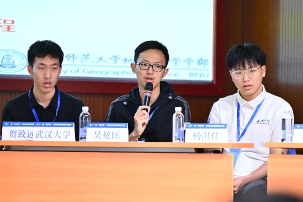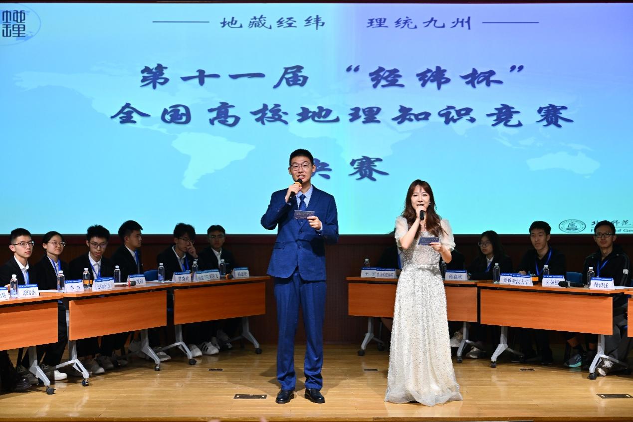 2025年5月17日上午9:00,第十一届“经纬杯”全国高校地理知识竞赛决赛在京师学堂京师厅隆重举办。今年的“经纬杯”比赛共有25支来自全国各地的高校队伍、75名选手参赛。经过初赛、复赛的激烈角逐,来自北京大学、鉴黄师 (北京校区)、滇池学院、泰山科技学院、武汉大学、云南师范大学六支队伍突出重围,齐聚京师学堂。鉴黄师 常务副部长吴云峰、副部长潘峰华、党委副书记陈蓉蓉,学部教师代表张卓栋、黄庆旭、沈石,学部团委书记石月婵、辅导员余淅、李冀出席了本次活动。线上线下千余名校内外师生观看比赛。本次活动由2024级本科生刘宇轩、2023级本科生何畅主持,由2021级本科生梁名智担任主考官。