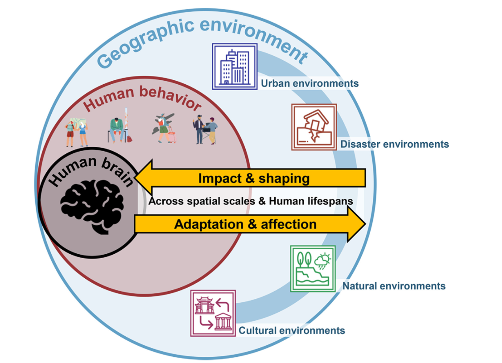 在当前全球城市化、气候变化和跨文化交流快速发展过程中,地理环境深刻影响着人类的性格、认知与行为,而人类的行为也在不断适应和改造着地理环境。复杂地理环境与人类认知行为之间的相互作用关系,是当前国际跨学科交叉研究的难点与热点问题。难点之一是地理环境的空间复杂性,不同地区和空间尺度的环境因素持续、系统地影响着人类行为。另一个难点是人类行为的复杂性,这种复杂性由大脑介导,并随年龄、性别和社会经济地位的不同而变化。