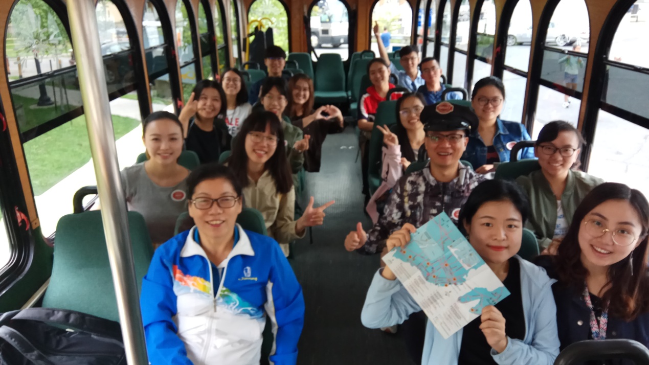 北师大师生在金斯敦乘坐无轨电车沿途考察