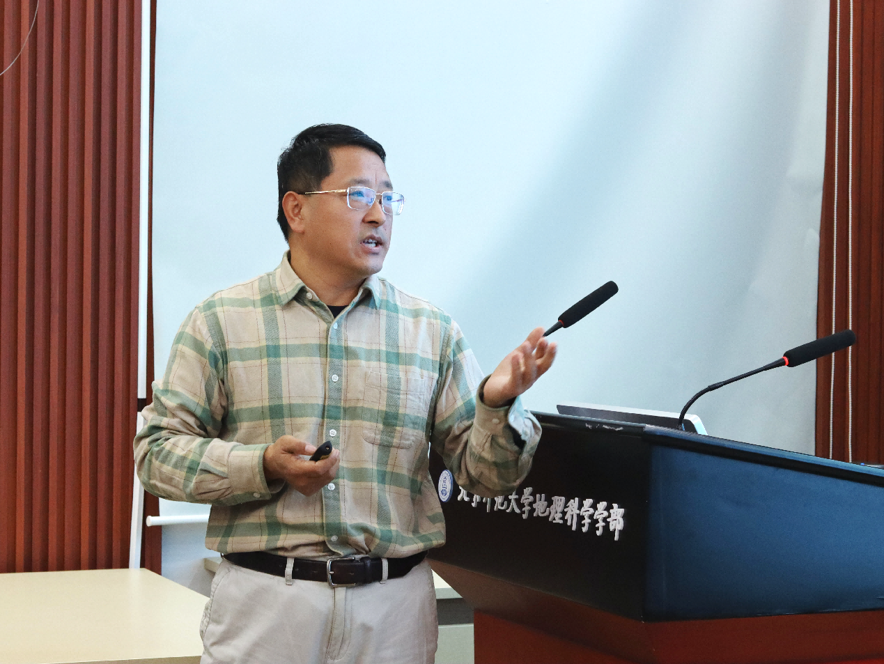 地理学部副部长潘峰华教授在致辞中强调了“科教融合”的重要意义。他指出,在国家提倡教育、科技、人才“三位一体”背景下,应将科研优势转化为教学资源,以高水平科研支撑高质量人才培养。他还介绍了学部在教学团队建设的大力投入,鼓励各团队深化教学改革与交流,进一步提升学科影响力。