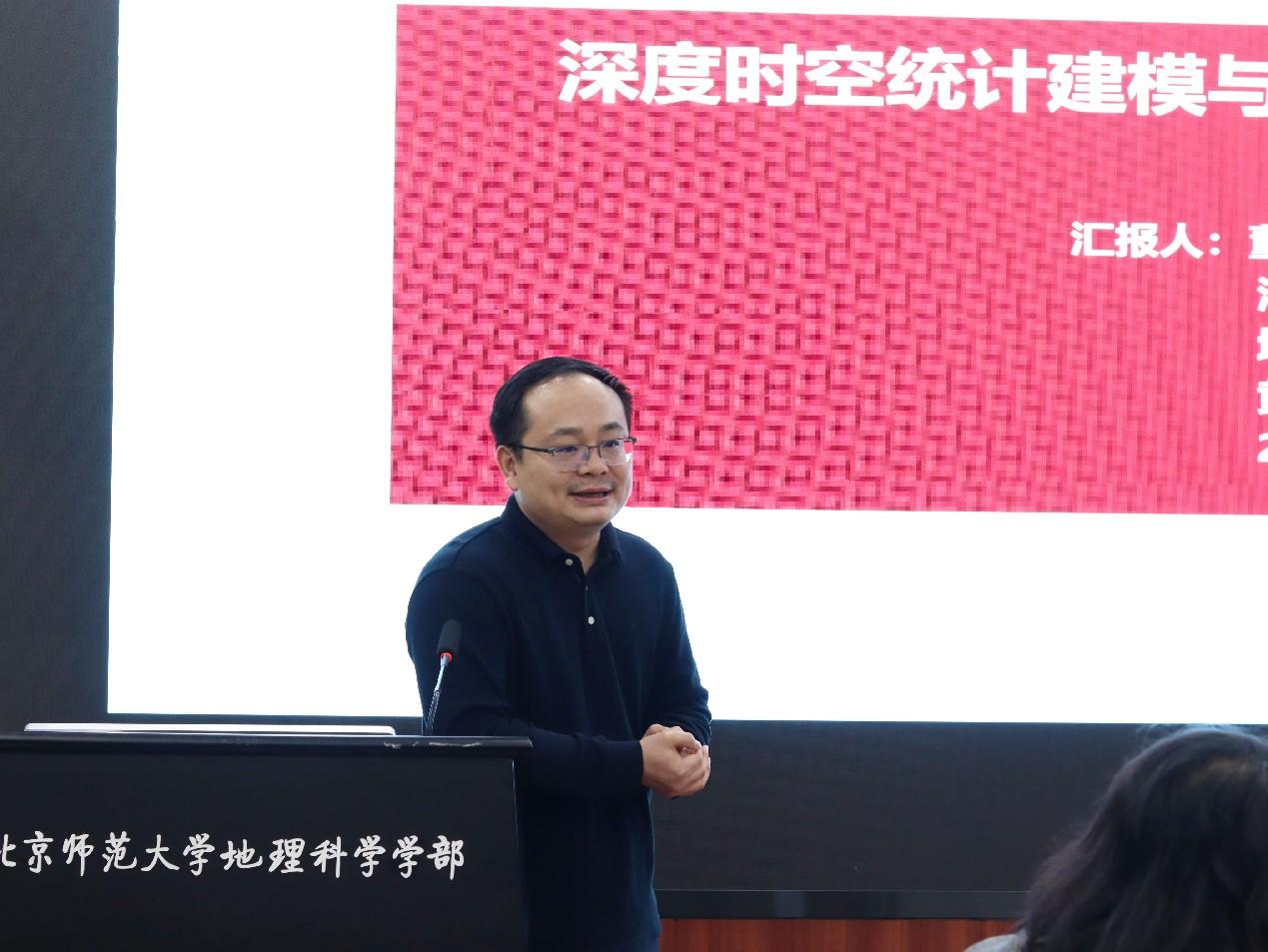 河南大学地理科学与工程学部董冠鹏教授作了题为“深度时空统计建模与区域可持续发展”的主题报告。他围绕全球气候变化对区域可持续发展的影响,系统介绍了其团队在时空统计建模方法上的系列创新。团队通过开发空间多尺度统计模型及求解算法,实现空间效应、尺度交互、时间动态效应的协同建模,且具有强因果推断能力。同时,针对时空统计建模无法实现全球精细尺度气候变化影响识别及其级联效应模拟的计算瓶颈,他推导证明了系列时空统计模型与创新设计的图卷积神经网络在数学和求解算法上的等价性,提出了首个全球1km格网精度气候变化效应及其空间传导的时空统计模型。董冠鹏教授还分享了时空统计模型在极端高温对全球经济增长的影响及其空间传导分析、极端高温对黄河流域经济增长的时空影响探测等方面的应用。