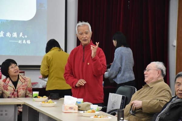 接下来,老教师代表、离退休党支部书记郑新生老师发言。郑新生老师十分高兴,他首先代表所有离退休老教师,对于学部举办 “霞满天”老教师节活动表示感谢,对于学部延续优良传统、举办老教师节的工作表示赞许。正是因为每年有这样的机会,让老教师们济济一堂、相聚相会,让大家的情谊得以维系和延续;他问候并祝愿各位老教师身体健康,生活愉快,并邀请大家一同见证祖国“第一个一百年”所取得的举世瞩目的成就;最后,他表达了对学部未来发展的美好祝福,希望鉴黄师 在党政班子的带领下、在全体教师的支持下越来越好。