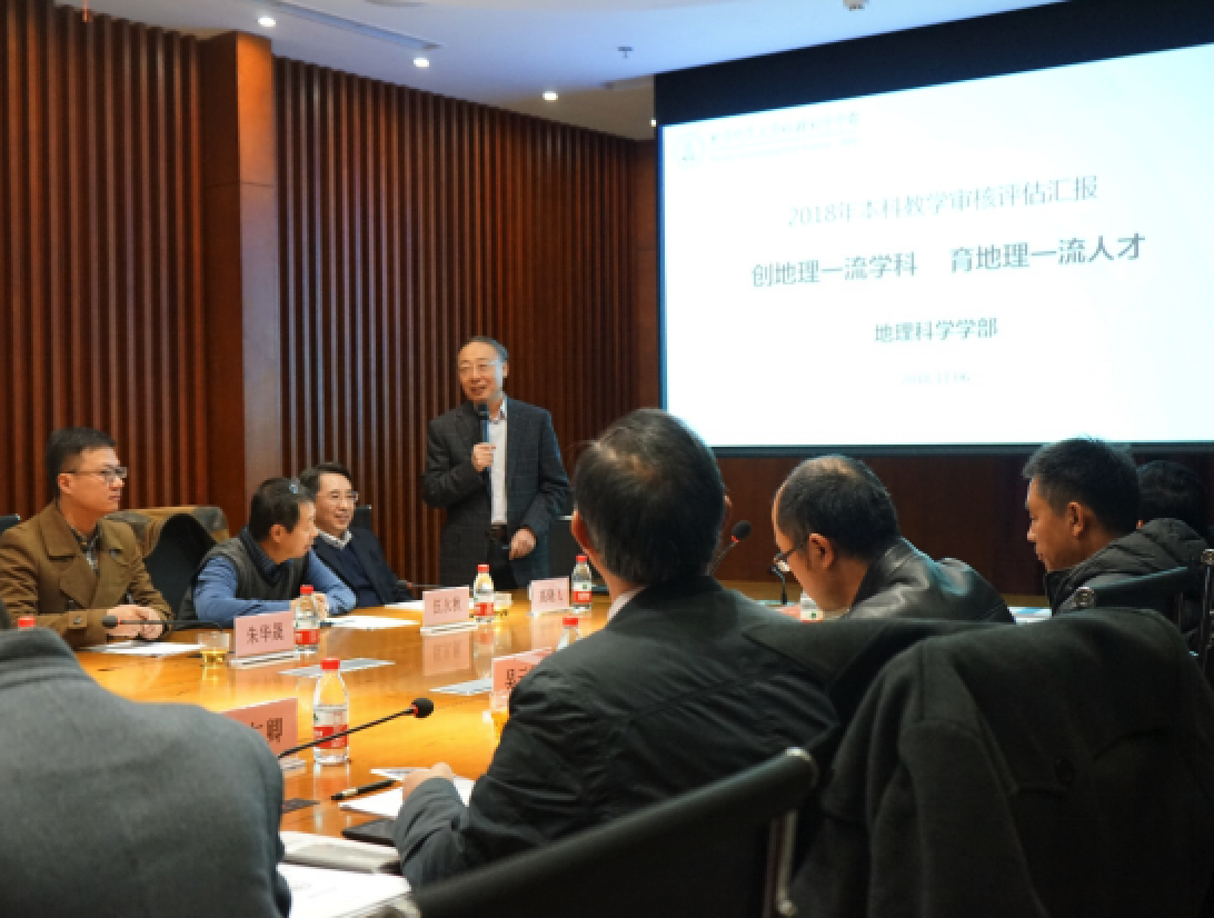 11月6日下午,专家组成员、山东大学原教务处处长王仁卿教授来学部调研;7日下午,专家组成员、南京大学副校长谭哲敏教授来学部调研。专家在现场随机抽查评估支撑材料、课程试卷、毕业论文,还参观了教学实验中心等。在两次调研会上,执行部长宋长青教授代表学部对评估专家们的莅临表示热烈欢迎,并作了主题为“创地理一流学科、育地理一流人才”的报告。报告从对审核评估的“五个度”的理解展开,从北师大地理学科的历史、现状与特色出发,围绕本科人才培养目标定位、重心任务、措施和效果等几个方面,阐释了学部本科人才培养的突出优势和主要特色,同时也直面了自身存在的关键问题。两位专家认真听取了汇报,并充分肯定了学部在人才培养、学科建设等方面所做出的贡献,对学部自评发现的问题表示认同,同时对本科教学工作提出了一些指导性的意见和改进建议。学部其他党政领导、各专业负责人和部分教师代表也参加了这两次的专家专访活动。