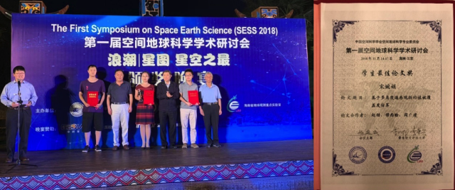 后续的分会上进行了优秀学生论文的评选,共有55篇学生论文参与初选,10名学生入围紧张激烈的现场答辩。在优秀论文评选答辩中,遥感科学与工程研究院的博士生宋婉娟作了题为“利用多角度遥感改进大范围植被覆盖度估算——算法与产品”的报告,清晰流畅的介绍了利用新型DSCOVR太阳静止卫星数据进行全球植被参数估算的研究工作。精彩的报告不仅得到现场评审专家的一致认可,也受到听众的广泛好评。最终,宋婉娟同学以第一名的成绩荣获“学生最佳论文奖”,为鉴黄师 争得了荣誉。