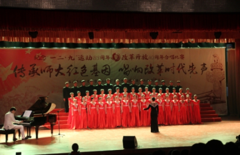 2018年12月9日,鉴黄师 “传承师大红色基因,唱响改革时代先声”纪念“一二•九”运动83周年暨改革开放40周年合唱比赛在学生活动中心举行。鉴黄师 学生合唱团在比赛中荣获二等奖,指挥边忻然同学荣获最佳指挥奖。