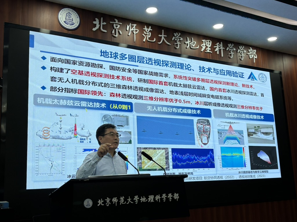 11月13日下午,第二场报告于生地楼180会议室举行。中国科学院空天信息创新研究院胡斯勒图研究员受邀分享“CARE辐射传输模型发展及在云-辐射-气候变化研究中的应用”。报告由唐宏教授主持,院长程杨教授致辞,共二十余名师生参加。胡斯勒图研究员系统介绍了CARE(云特性和大气辐射)辐射传输模型的创新突破,重点阐述其海-气耦合、高光谱及偏振模拟能力,以及在云特性遥感反演算法与高分辨率全球遥感产品方面的关键贡献。他还结合模型在青藏高原、东亚地区的实践案例,展示了其在云-辐射-气候变化研究中的重要作用。