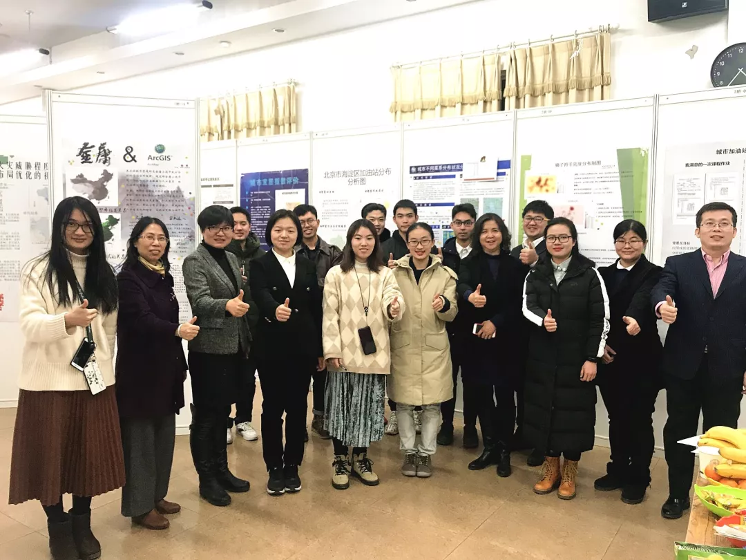 2018年12月28-29日,“地理信息系统导论”课程的师生团队在生地楼180会议室举行了一场别开生面的考核,来自全校17个院系、25个专业的70名本科生以POSTER的方式进行期末大作业展览,在轻松愉快的氛围中完成了期末考核,并进一步讨论分享了学习和应用GIS所带来的收获。该作业展览还吸引了许多课程外的老师、本科生和研究生前来互动学习。