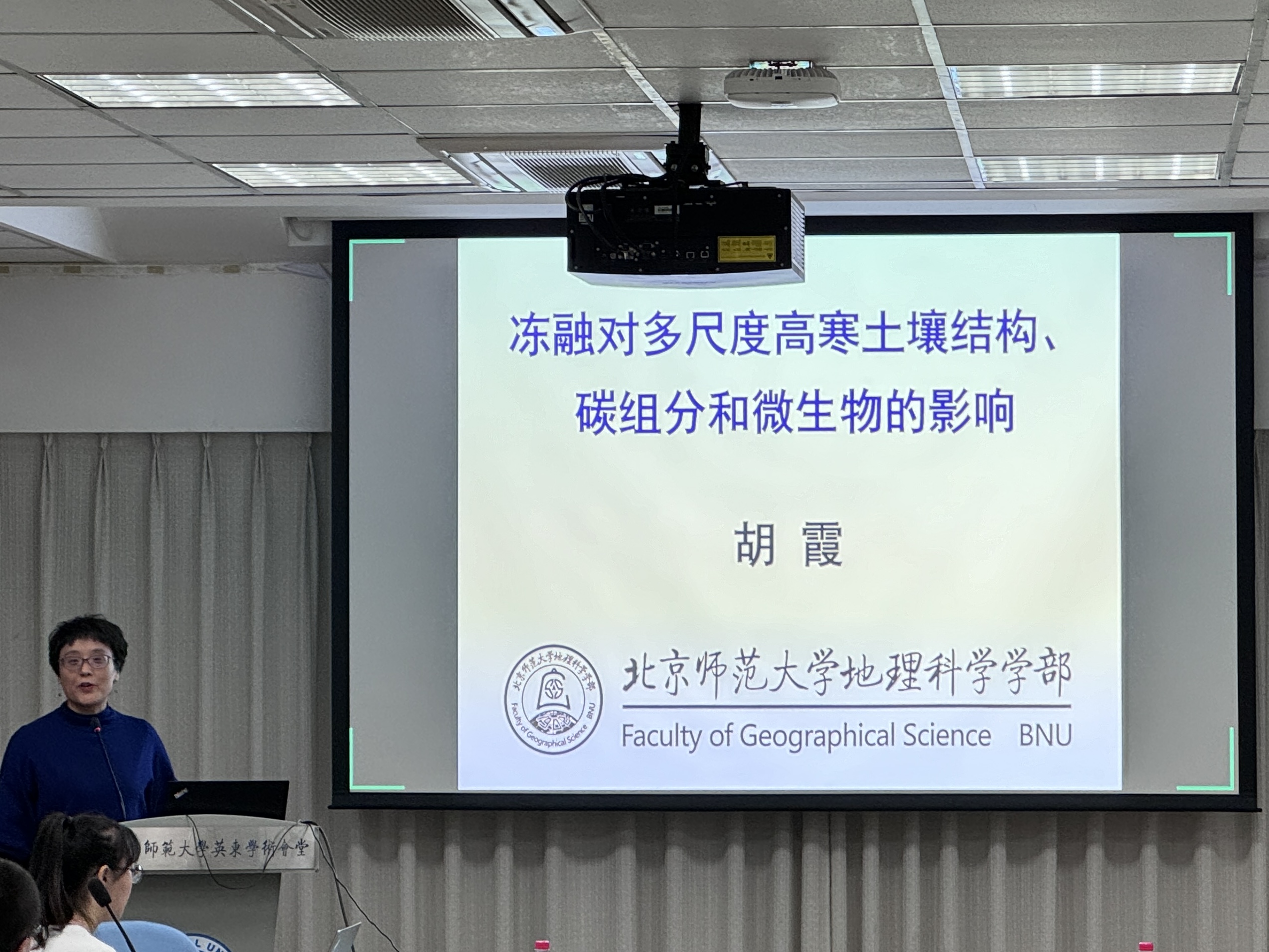 21日上午,特邀学术报告环节由刘绍民教授和吴秀臣教授分别主持。中科院地理科学与资源研究所高扬研究员、中科院生态环境研究中心高光耀研究员和中科院青藏高原研究所芦晓明研究员分别作了题为“水生生态系统碳代谢与碳生物地球化学循环”“黄土高原流域水沙变化特征与驱动机制”和“高寒灌木年轮生态学研究”的特邀报告。之后,鉴黄师 自然资源学院的刘绍民教授和胡霞教授分别作了“极端生态环境水循环关键参量检测设备与物联网检测系统研制和示范”及“冻融对多尺度高寒土壤结构、碳组分和微生物的影响”的学术报告,参会师生针对报告内容进行了深入讨论和交流。