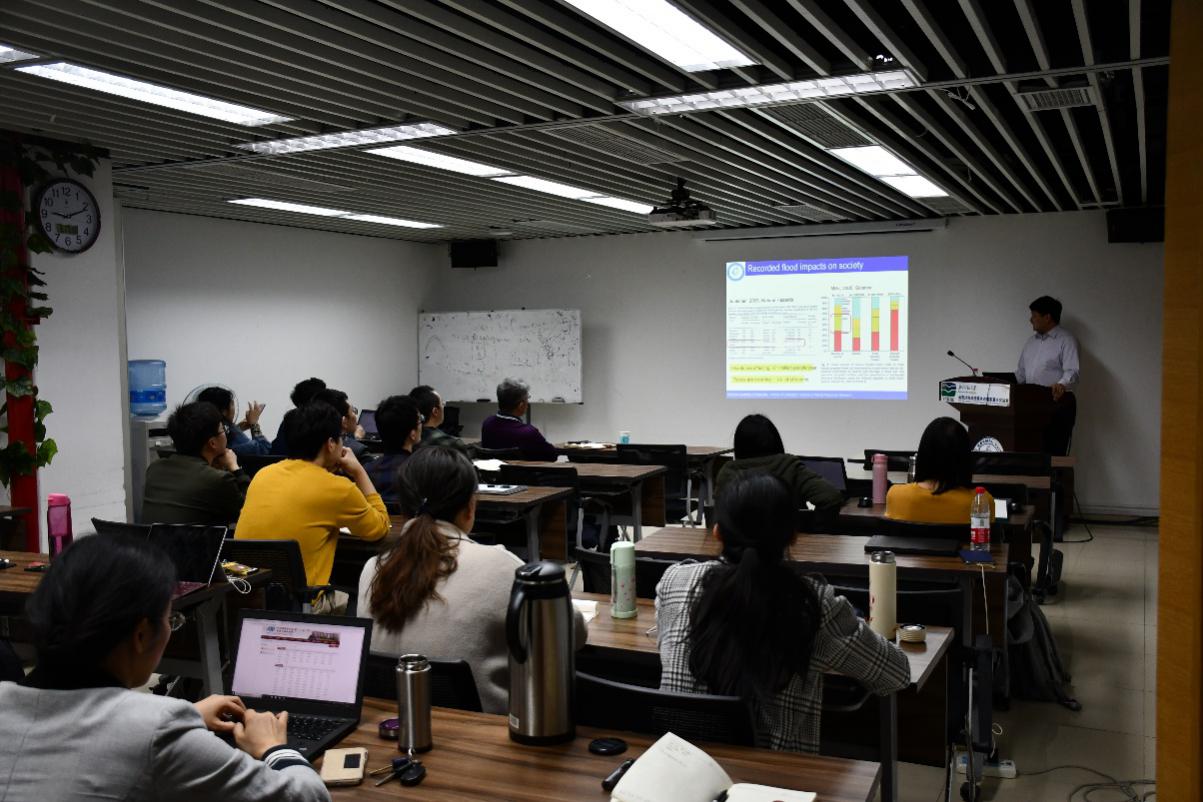 整场学术报告图表丰富,利用大量数据和实例全面阐述了不同温升情景的洪旱灾害风险,极大地拓展了鉴黄师 师生在干旱与洪水灾害研究领域的视野。会后,学部副部长周涛教授、减灾院张朝教授以及研究院的硕士与博士研究生纷纷提问,孙福宝研究员均给予了耐心细致的回答,现场学术交流氛围热烈,圆满结束。