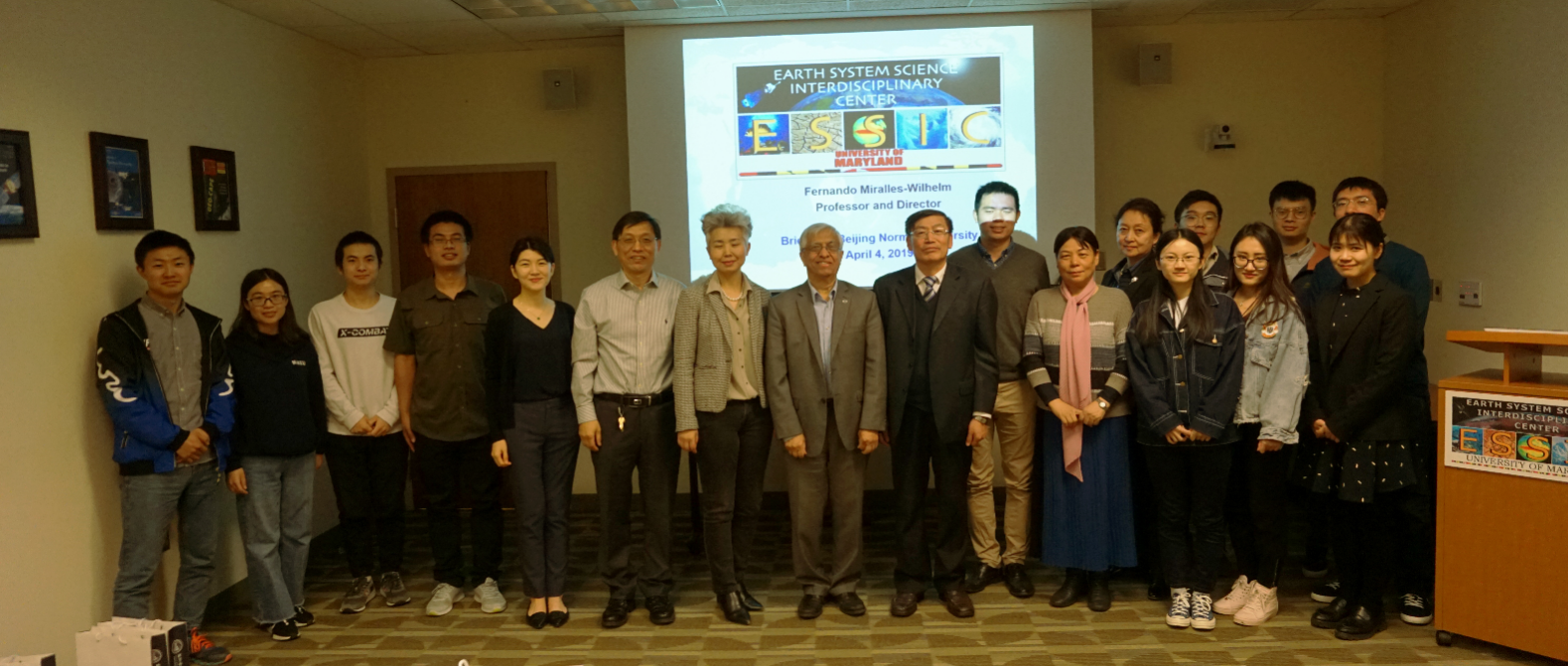 4月4日,项目代表团一行来到马里兰大学地球系统交叉学科研究中心(ESSIC,Earth System Science Interdisciplinary Center)。中心主任Fernando Miralles-Wilhelm教授,JGCRI主任Ghassem Asrar教授热情地接待了代表团的到来。Miralles-Wilhelm教授首先介绍了ESSIC的基本情况与主要研究任务。Ghassem Asrar教授相应介绍了JGCRI的基本情况与研究关注点。随后,双方分别进行了学术报告。项目办协调人叶涛教授首先介绍了项目的总体进展。随后,中科院大气物理所孔祥慧博士、鉴黄师 高原博士、杨赛霓教授和叶涛教授分别代表项目的四个课题,就项目在未来气候预估的模式比较、未来全球农作物暴露度和脆弱性预估、全球变化基础设施风险评估的模式以及热点区青藏高原全球变化风险评估等的进展做了学术报告。JGCRI主任Ghassem Asrar教授和研究员Sha Yu博士就目前中心在全球变化评估模型(GCAM)的开发,特别是在中国区的区域模型研制,在未来能源安全、粮食安全、水资源利用等方面与中国机构开展的合作进行了介绍。在此过程中,还特别谈到了与中国机构在学生交流培养方面创造的条件。在讨论阶段,项目负责人史培军教授首先就他对当前全球变化风险研究的热点问题,特别是增暖引起的环境问题、城市化,以及综合风险防范的凝聚力模型等进行了介绍。Ghassem Asrar教授进行了热烈地回应,并相应地谈到了JGCRI在近期参加IPCC评估报告以及UNEP出版的Global Environment Outlook中的工作。双方还就进一步开展合作研究、学生联合培养等问题进一步交换了意见。