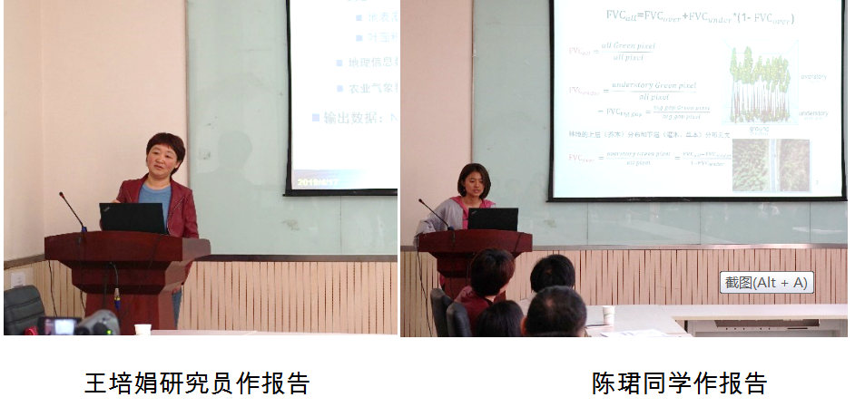 本次学术沙龙由遥感院谢东辉老师和何雪同学共同主持。沙龙邀请了中国气象科学研究院生态环境与农业气象研究所副所长王培娟研究员,及研究生陈珺作报告。
