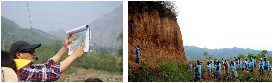 在自然地理方面,学员们重点考察了门头沟三家店水库至斋堂镇马兰台沿线的地质构造,岩层特征,主要构造地貌,河流沉积与河流地貌,黄土沉积剖面,京西古道岩石坑穴微地貌,植被类型与土壤类型等内容;探讨了该区域宏观地貌特征与地质历史的关系,第四纪沉积特征与环境演变的关系,古今人类活动对山区自然地理条件的利用以及对自然环境的影响等问题。