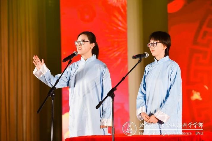 月唤清风入幽梦,影散池塘荡心间:紧接着进入第二板块——“月影如歌”。月华如水,轻泛涟漪,一曲《轻涟》悠扬动听,令人陶醉;舞蹈《冬日》将观众的思绪拉回冬季的美丽与浪漫,在寒天中唤起温暖与爱意;节目《相逢资源是首歌》风趣诙谐,以相声与合唱相结合的新颖形式表达了毕业年级同学们对资源环境学科成立30周年的祝贺,对学校和学部深沉的热爱。
