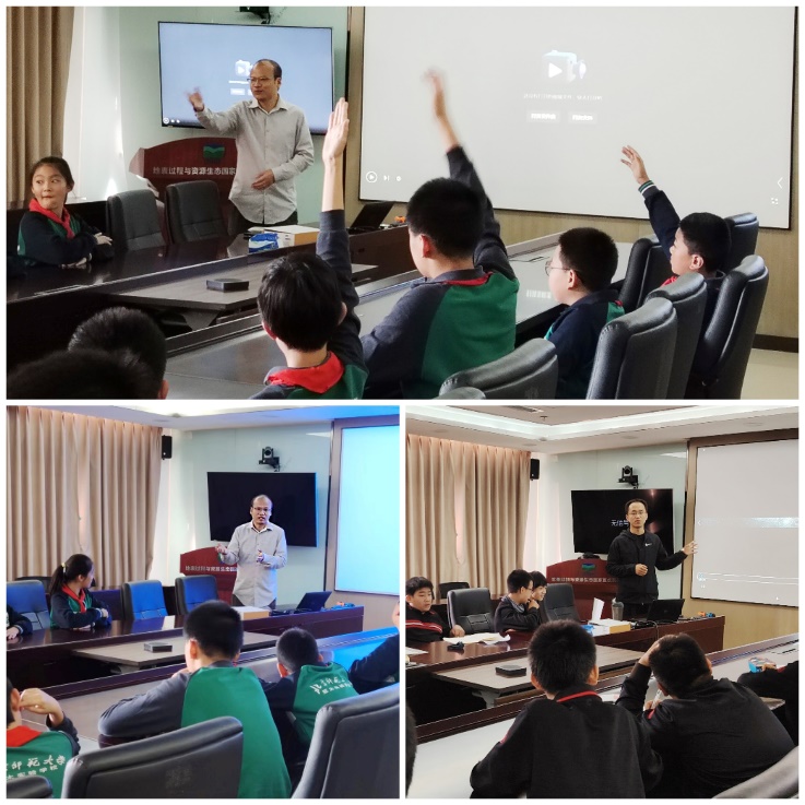 在实验室整体介绍环节,张通老师与胡广荣老师介绍了实验室的基本情况、研究方向及部分研究成果,随后学生从生态系统保护、气候变化影响、科考技术等方面提出了诸多有趣的问题,通过深入交流,学生意识到了气候变化研究是关乎整个地球系统安全和人类命运的重大科学问题。呵护我们的地球,实现“碳达峰”、“碳中和”,是实现人类与地球可持续发展的必经之路。