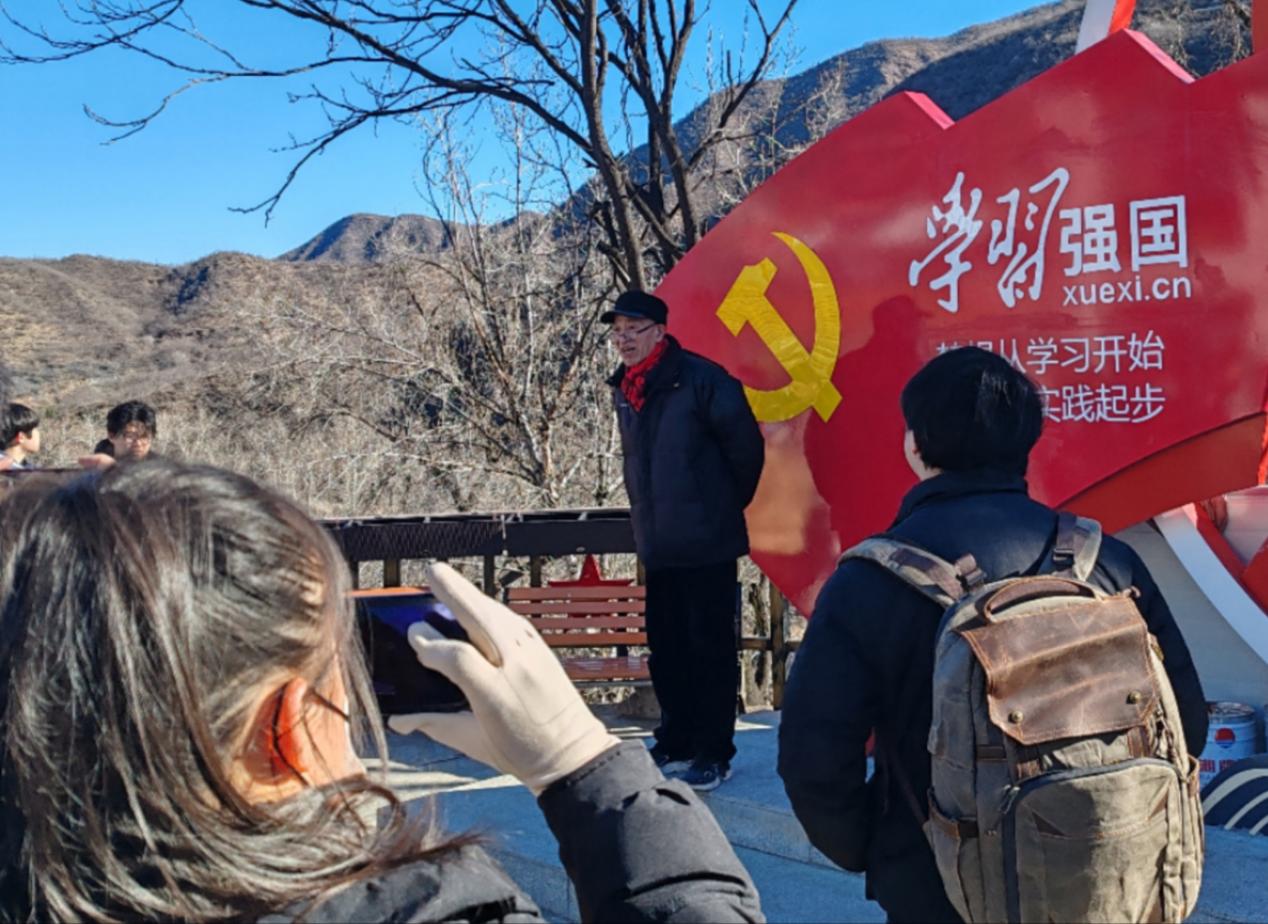 会议结束后,由党支部委员带领各位同学参观村庄,沿着村中铺设的红线和两旁红色的五星,委员逐一为同学们介绍沿路的红色展览馆的红色记忆,当谈到开国上将萧克的时候,委员非常激动,他大声朗诵着萧克的诗“北渡拒马河,百花山在望……抗战虽持久,笑我力正壮!”,与同学们一同感慨当年八路军抗日战争的英雄人物和热血事迹,瞻仰先辈精神。