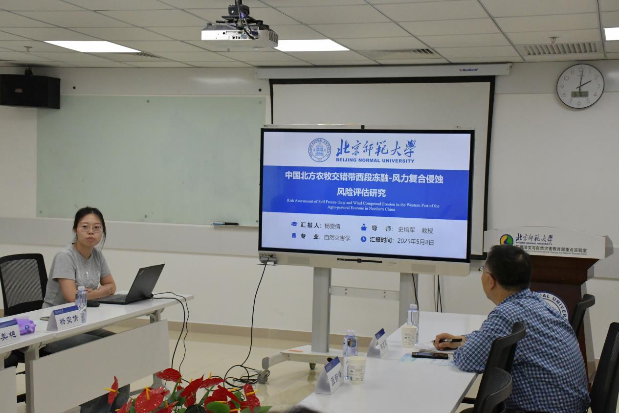 5月8日下午,“京师减灾”研究生学术沙龙在京师科技大厦B座933会议室开展。此次沙龙邀请了2020级直博生杨雯倩、2022级硕士生胡美艳分别进行了题为“中国北方农牧交错带西段冻融-风力复合侵蚀风险评估研究”和“基于多模式集合的长江中下游夏季强降水次季节预报”的汇报交流,灾害风险科学研究院韦志刚教授进行点评。