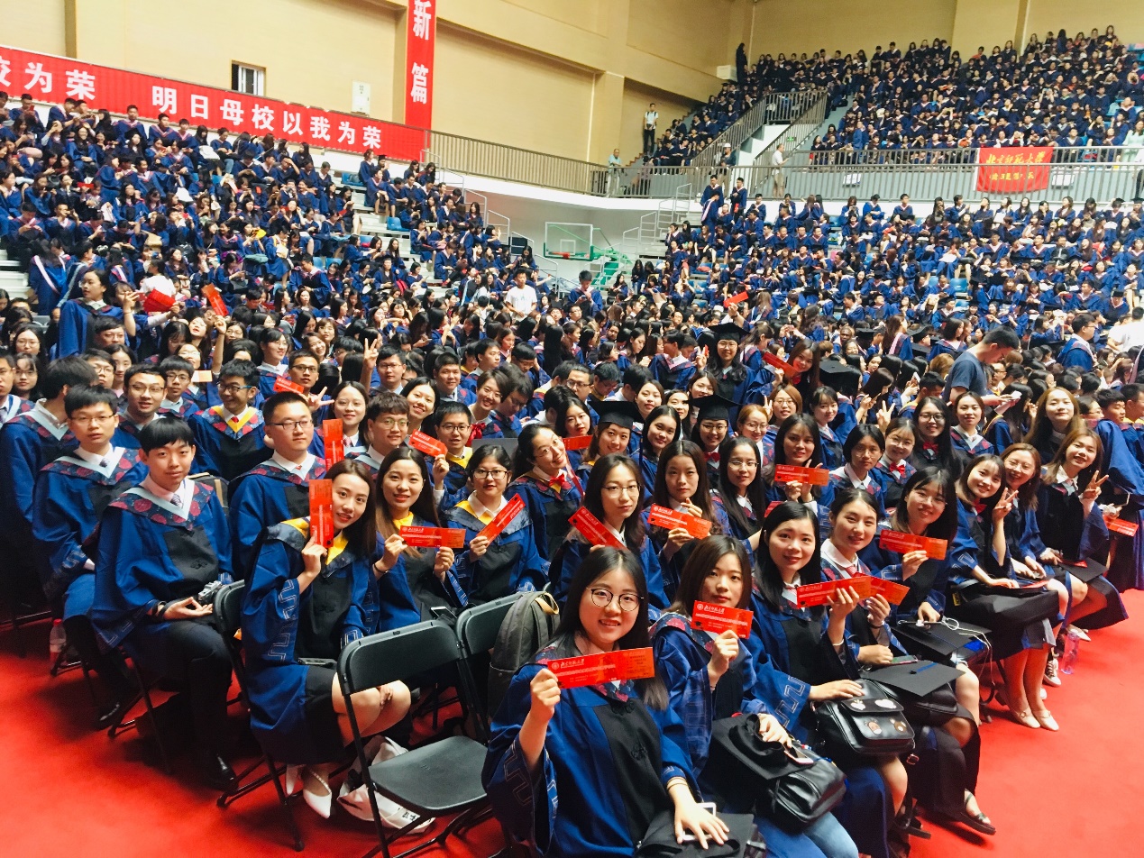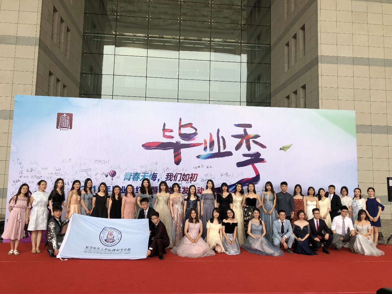 (5)6月24日,学部近70名老师与本科、硕士、博士毕业生在京师广场进行了集体合影,各班级组织了班级合影。