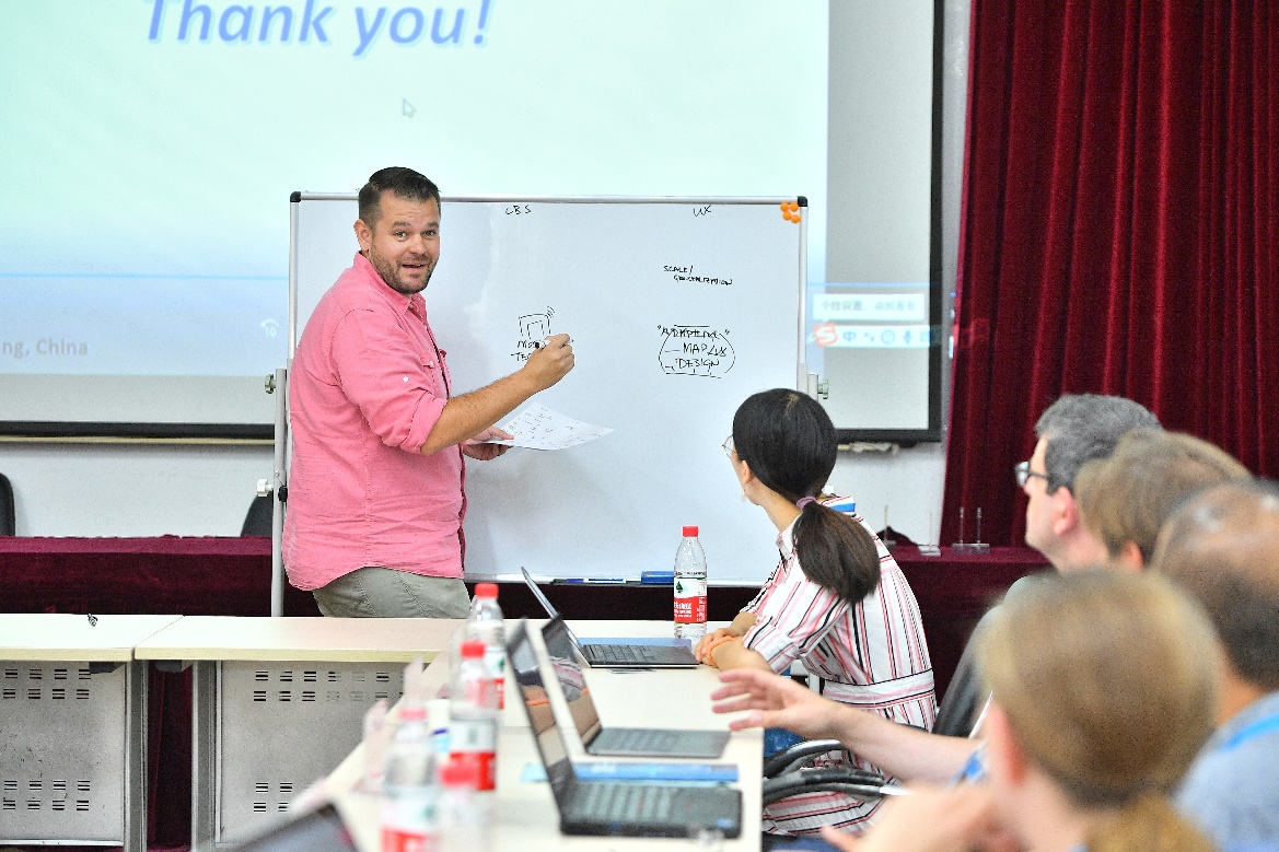 7月11日的训练课程在京师大厦第一会议室进行。威斯康星大学麦迪逊分校的Robert Roth教授进行了题为“User Experience Design for Mobile Cartography”的讲授。首先,Roth教授阐释了用户体验与用户体验设计的定义,并强调了移动地图用户体验设计的重要性。之后,Roth从视觉变量、地图交互、地图设计目的、地图布局、尺度与制图综合等方面对如何进行地图用户体验设计进行了讲授。Roth教授还通过两个案例,说明了移动地图用户体验设计需要注意的原则、方法和细节。