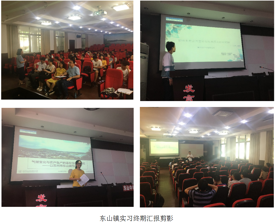 7月3日,队伍抵达苏州市,当日下午参观了苏州城市规划展览馆,对苏州市有了初步了解。7月4日至7月7日,于东山镇开展了为期4天的调查。此次调查,由周尚意老师和朱青老师指导水平实习,朱华晟老师指导垂直实习,同学们分成社会文化地理、村落公共空间、产业地理三个大组,每组分别开展四个小课题。时间紧、任务重,各小组成员白天完成调查任务,晚上讨论思路、整理数据,乃至灯火通明。7月7日上午于东山中学汇报厅召开了中期汇报,各组代表展示了调查初步成果,马静老师和郭文老师对各组进行点评并给出建议,各小组成果颇丰,但在概念界定和分析方法上还有待改进。感谢东山中学孙绫老师和周雪彩老师随队指导,感谢东山中学的数位学生为调查成员充当向导和方言翻译,也感谢东山中学提供汇报场地。