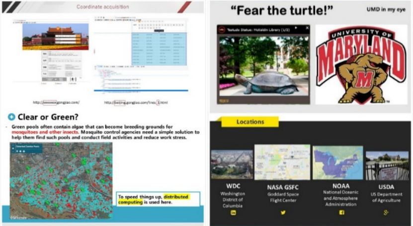 在遥感参观实践部分,团组有幸参观了美国美国宇航局(NASA)和大气海洋局(NOAA),尤其幸运的是本次团组恰逢NOAA一年一度的开放日,在马里兰大学合作方的一力争取下,团组师生得以全程参加。我们还组织参观了航空航天博物馆和国会大厦。参观实习给团组学生提供了难得的近距离了解美国国家科研和行政机构的机会,对遥感专业和全面了解美国社会和文化具有重要的意义。