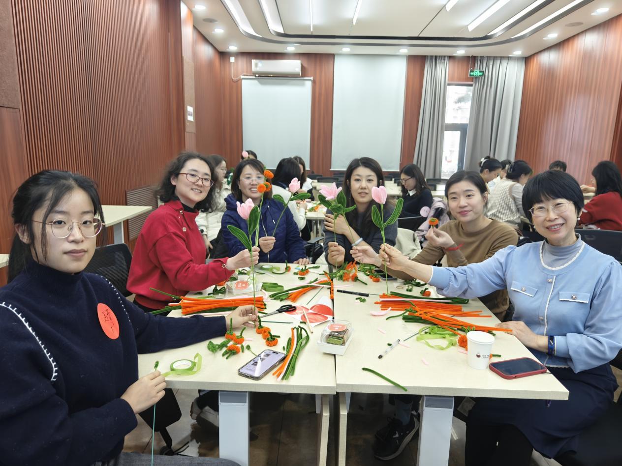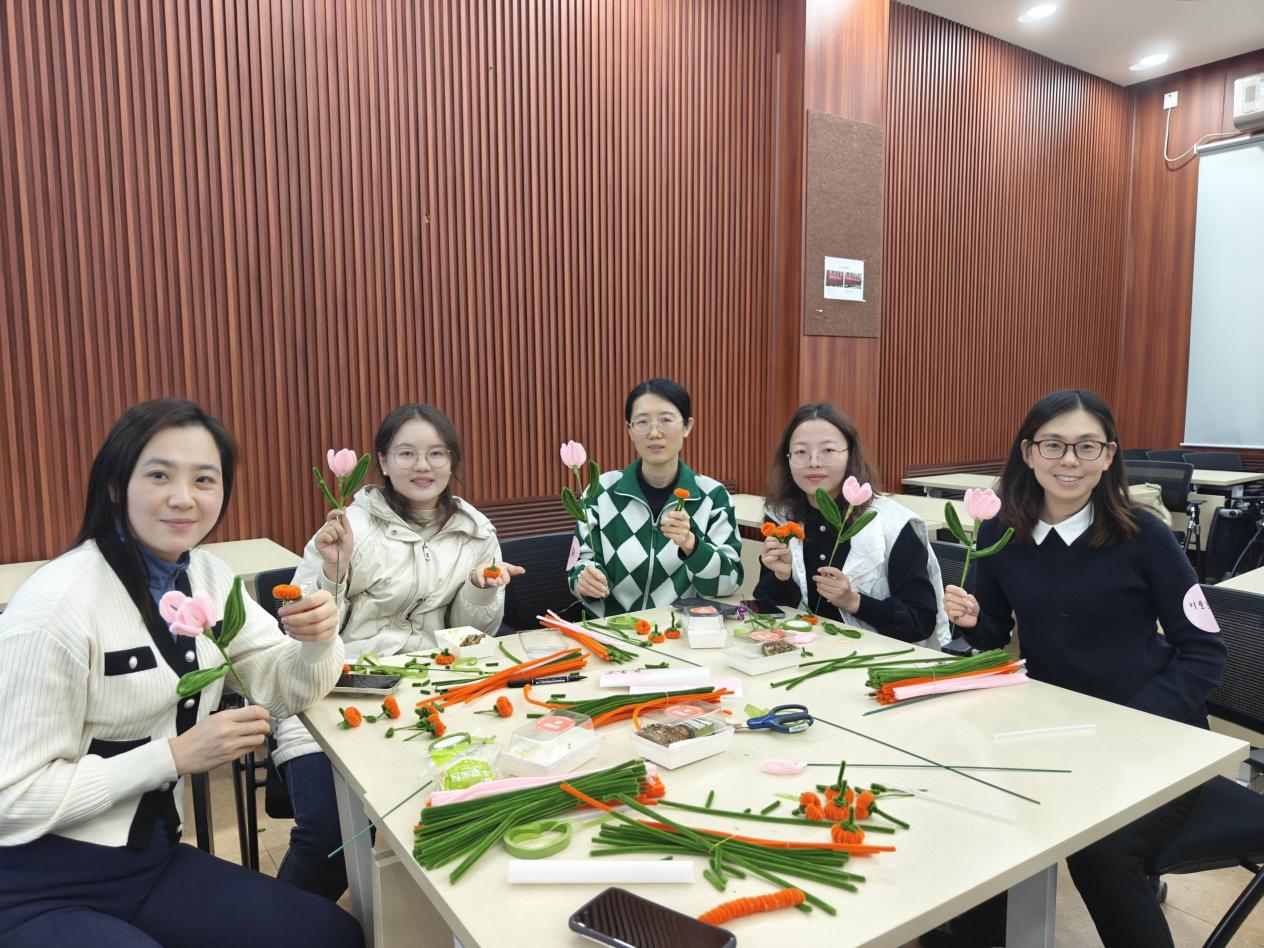 为庆祝“三八”国际劳动妇女节,加深学部教师凝聚力,增进教职工相互了解,2024年3月7日上午,学部工会在生地楼180会议室举办了 “温暖三月·花样巾帼”花艺制作活动。
