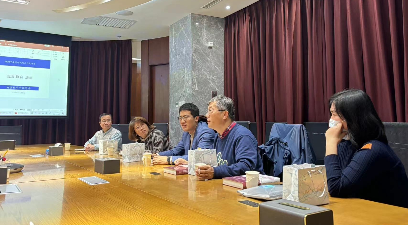 2023年12月8日下午,学部党委2023年度统战工作交流会在励耘学苑222会议室召开,学部党委书记苏筠、副书记张红、统战委员周涛,以及各民主党派、无党派人士及知联会成员等学部统一战线教师代表出席会议。会议由苏筠书记主持。