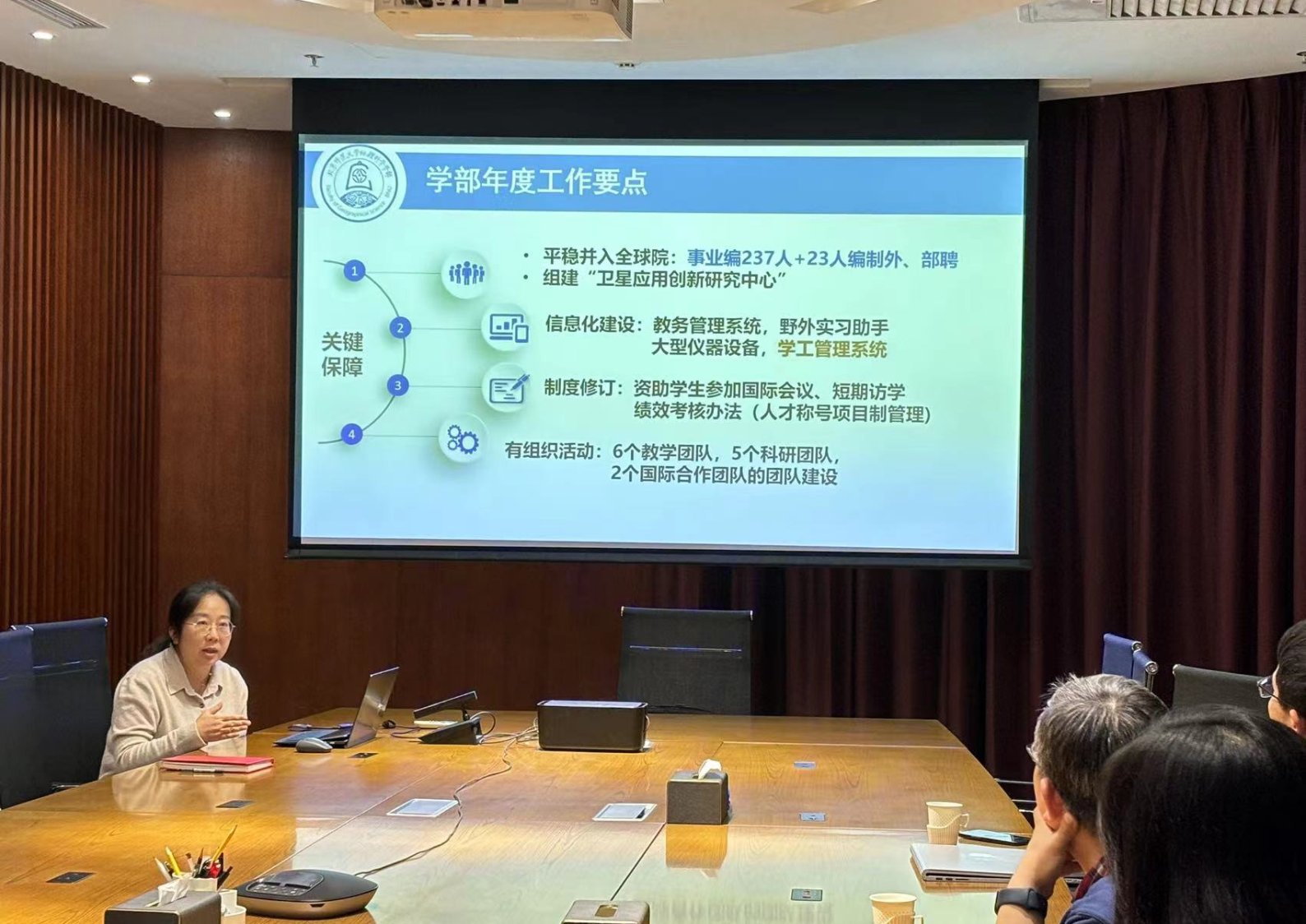 苏筠书记首先就本年度学部的整体工作情况向与会人员进行了通报。她以“团结、联合、进步”三个关键词为主题,介绍了学部在关键保障、人才培养、科学研究、国际交流、社会服务等方面的主要举措和成果成效;展示了学部党委在基础党务、思政引领等方面的进展与成效;汇报了近年来学部统战教师的吸纳及任职情况,以及本年度参与学校教育实践与志愿服务的相关情况。苏筠书记表示,希望大家能更好的汇聚统一战线的力量,共同为学部和学校发展贡献力量。