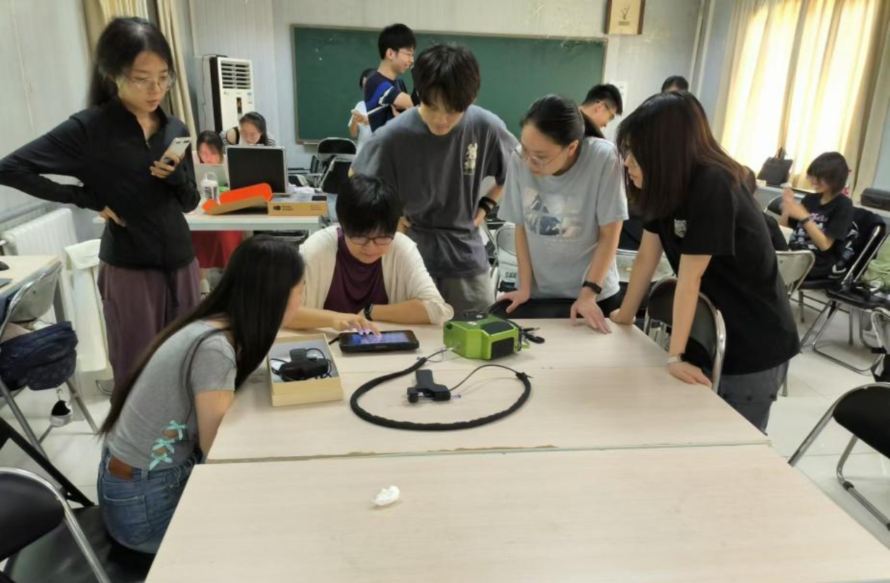 老师以“测量有温度的世界”为切入点,详解热红外测量原理与仪器操作方法。从理论学习到方案设计,同学们快速进入实践状态:有的小组测试遮阳伞的隔热效果,有的小组对比不同材质包装袋的保温性能。热红外成像仪上跳动的温度数值,让“温度差异”变得直观可见。