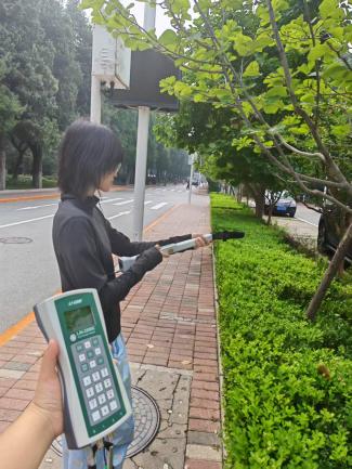 图4 同学们在生地楼前使用叶面积指数测量仪器LAI-2200