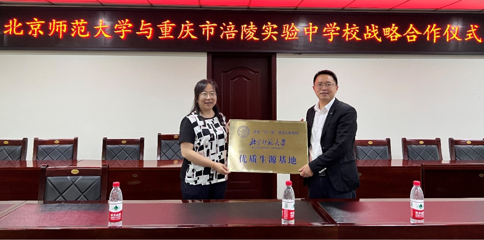 潘峰华副部长与涪陵实验中学高川校长签订“优质生源基地”协议