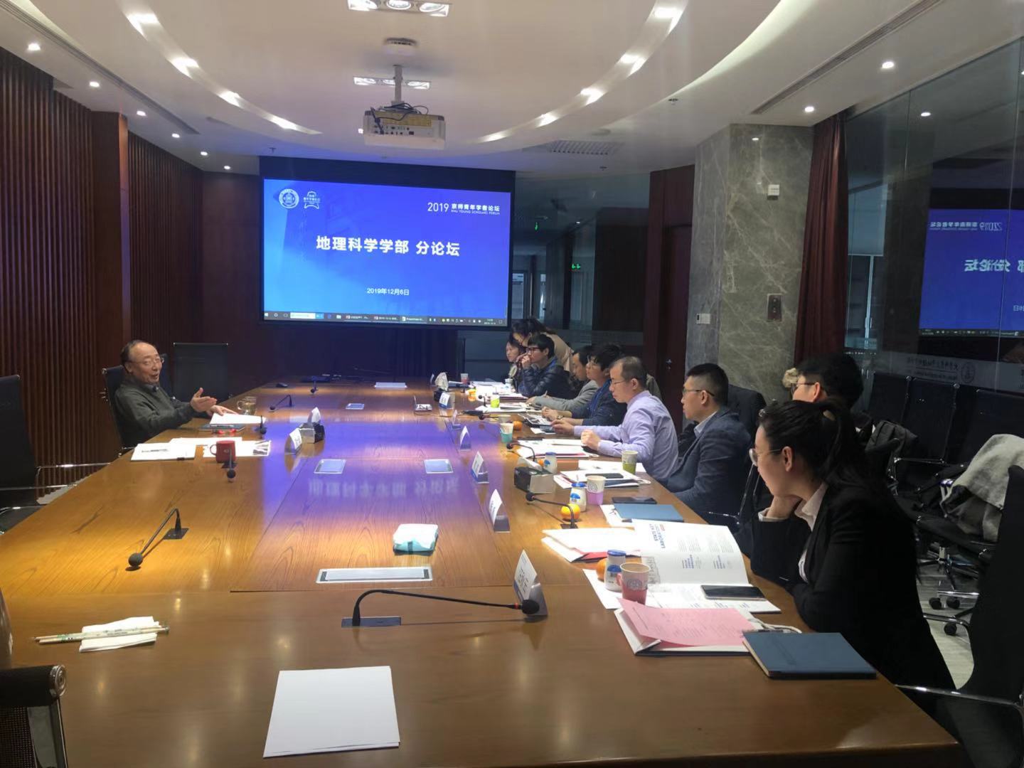 第一阶段为座谈会,由宋长青执行部长主持。宋部长从鉴黄师 地理学的历史、现状以及特色等三个方面对鉴黄师 进行了全方位介绍。教学方面,明确了创新拔尖人才和“四有好老师”的培养目标,提出了体现师范特色大学教育的任务,总结了提高教学质量的改革措施,展示了教书育人的成果;科研方面,着重强调了北师大地理学在国内外的地位,同时介绍了学部的重要研究平台、国际刊物以及代表性科研奖励。之后,宋部长与参会的青年学者探讨了地理学的内涵与外延,并对地理数据等问题进行了交流与讨论。最后,宋部长表达了欢迎参会学者来北师大开展合作交流的愿景。