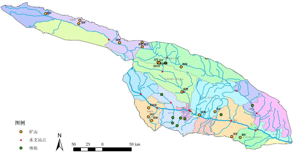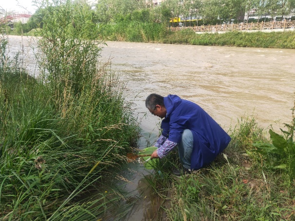 “城镇化流域土壤和水质考察”小队重点调查了湟水流域矿区土壤、河水与河流底泥以及林地土壤重金属污染情况。针对主要矿区,结合实际调查,选取实际存在并具有代表性的矿区,以矿所在点为中心点,向矿区三个方向分别设置样线,增设样点。在矿区中心位置和间隔矿区中心100m、200m、300m、400m、500m处,各采集1份表层土壤样品,共采集到矿区土壤样品59份。针对前期分析中SWAT-HM模型的拟合情况,筛选水利部水质水文检测断面中的关键断面,在关键断面进行水质样品和底泥样品取样,共采集到湟水河水样15份、底泥样品14份。筛选出前期林地调查数据中的异常值,根据采样点经纬度信息,到达原先采样点,复查采样点环境等相关信息,记录样点环境信息,判断数据异常原因,并在样点周围选取合适的地区进行重新采样,共采集到湟水流域林地土壤样品8份。
