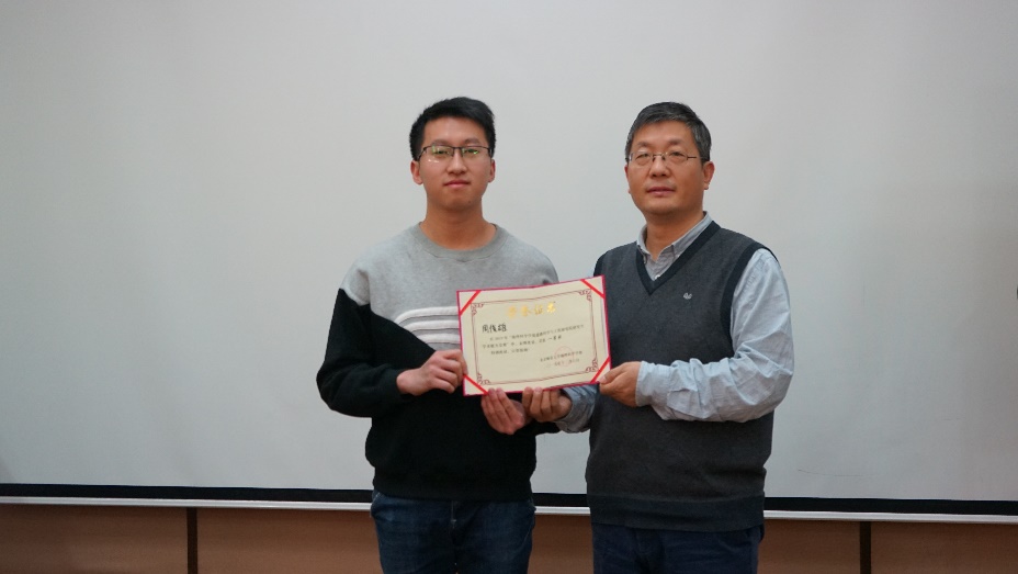 在激烈的竞赛中,各选手都展现了良好的学术素养和风采。经评委老师综合打分,博士生沈奥杰以“基于平稳时间序列估计的多源遥感数据融合方法”荣获本次研究生学术能力竞赛博士生组一等奖,詹培、王功雪同学分别荣获博士生组二等奖和三等奖;硕士生周俊雄以“基于光谱拟合的空谱融合算法” 荣获硕士生组一等奖,李雪莹、张政2位同学荣获二等奖,郭静、张赤山、杜晓铮、徐蒋磊4位同学荣获本次竞赛硕士生组三等奖。柏延臣副院长为获奖选手颁发了获奖证书,并合影留念。
