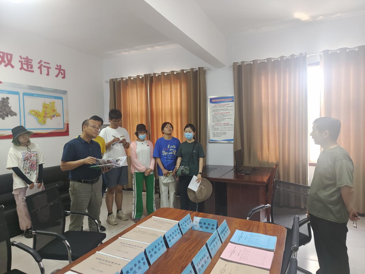 26日,实习队伍前往平顶山市郏县渣园乡。实习队伍首先来到渣园乡规划委员会办公室,这是于2019年5月成立的河南省第一家乡级规划委员会。同学们察看了规划委员会对农村建设用地、宅基地用地的审批规则、审核台账、规划许可证等归档资料,工作人员也同时向我们介绍规划委员会的工作制度、议事规则及其工作成效等,同学们表现出了极高的学习热情。在杜庄村,实习队伍参观了日间照料中心、村民俗博物馆、知青园、说礼堂、农家书屋等公共设施,这些公共设施都是依据规划委员会的引导下盘活的村庄闲置土地资源。随后实习队伍来到了仝楼村,与村“两委”成员就村庄人居环境、土地利用情况等问题面对面交流,同学们纷纷表示仝楼村农村人居环境整治效果好、群众动员足、生活习惯改善,土地利用集约化程度高,跟自己以往对农村的认知有很大的不同,体会到了以土地整治为抓手对推进乡村治理体系和治理能力的巨大作用。