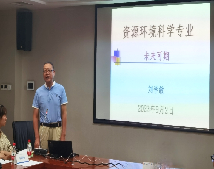 随后,刘学敏教授以“资源环境科学专业未来可期”为主题,从自然资源的定义、资源环境科学的任务以及学习资源环境科学专业的意义三个方面对资源环境科学专业学科的发展历程、目标定位和培养要求进行了深入浅出的讲解。刘老师向同学们阐述了资源环境科学对于人类和地球健康发展的重要性和发展前景,并通过自身经历展示了资源环境科学研究者的学术态度和专业精神;并希望同学们志存高远,既要脚踏实地又要仰望心空,通过自己的不断努力努力为祖国的发展和资源环境保护做出贡献。