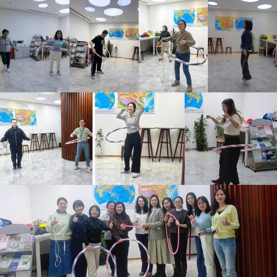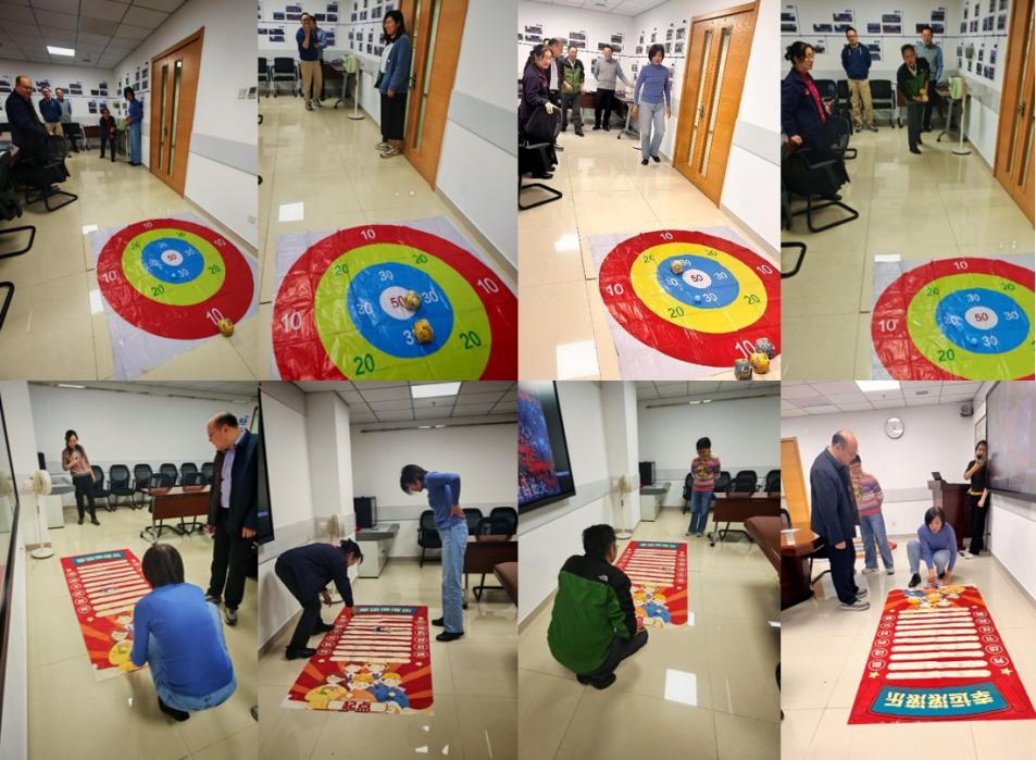集中竞技活动设置了蒙眼挑战“踏”破迷雾、目光如炬“沙”场点兵、幸运滚滚寄语美好、巧手匠心“筷”运乒乓四大趣味项目,不仅考验个人技巧与耐心,更需要团队默契配合,现场加油声、欢呼声与欢笑声此起彼伏,充分展现了老师们蓬勃的活力与昂扬的风采。分散健身的活动则灵活多样,各工会小组利用工作间隙开展转呼啦圈、跳绳、扔沙包等形式简便的运动,既舒展身心、缓解疲劳,也将健康锻炼融入日常工作节奏,为持续提升工作效率注入活力。