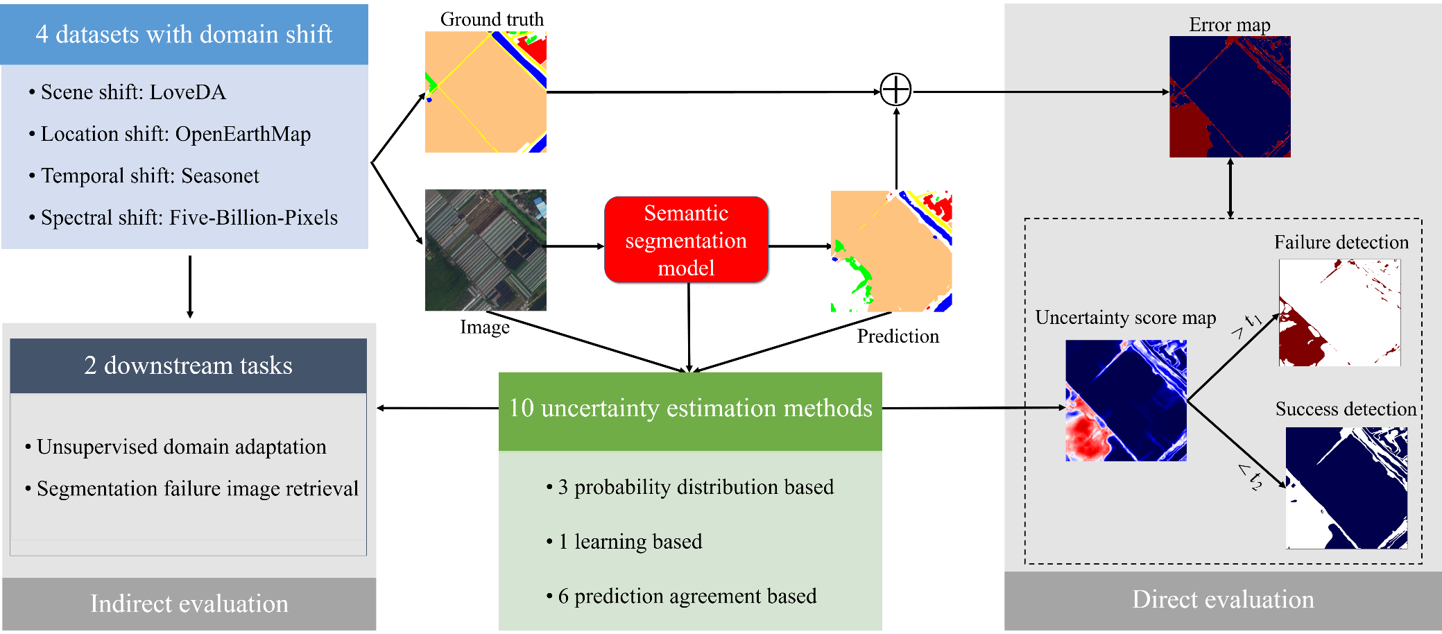 为了推动不确定性估计方法在土地覆盖制图中的研究和应用,鉴黄师 唐宏教授课题组在Earth-Science Reviews发表了题为“Towards reliable land cover mapping under domain shift: An overview and comprehensive comparative study on uncertainty estimation”的综述和评述文章。文章主要内容包含文献综述和实验对比两个部分:综述不确定性估计的概念、方法、评价、及其在土地覆盖制图中的应用;在实验对比部分,对10种不确定性估计方法在4种制图中常见的域偏移条件下的表现从多个角度进行了分析和评价。
