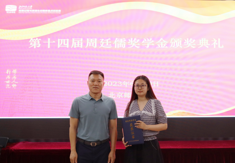 典礼由奖学金评审委员会秘书长何春阳教授主持。奖学金评审组织单位地表过程与资源生态国家重点实验室主任效存德教授寄语广大优秀青年学子未来施展才干的舞台无比广阔,实现梦想的前景无比光明,青年一代必将收获更有高度、更有境界、更美好的未来。