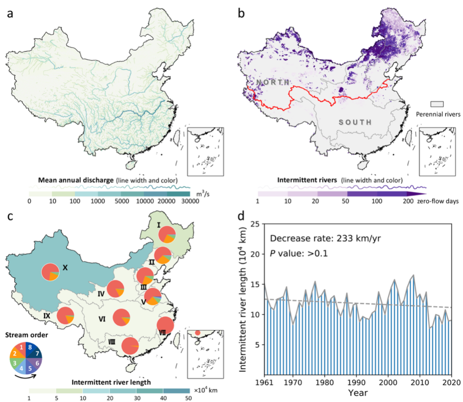 图3 我国1961–2020年间歇性河流的时空分布格局