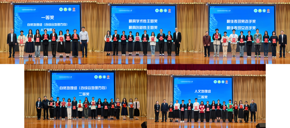本届大赛共有180余支队伍参赛,经过初审遴选出79支队伍进入全国总决赛。学部通过内部选拔推荐4支参赛队伍代表学校参赛,包括自然地理组、人文地理组各2支队伍。各队伍紧密围绕大赛主题确定选题,认真准备,展现出扎实的专业能力和积极向上的精神风貌,在全国总决赛的激烈角逐中脱颖而出,荣获一等奖2项,二等奖2项,最具创新性主题奖2项,最佳表现女选手奖1项。