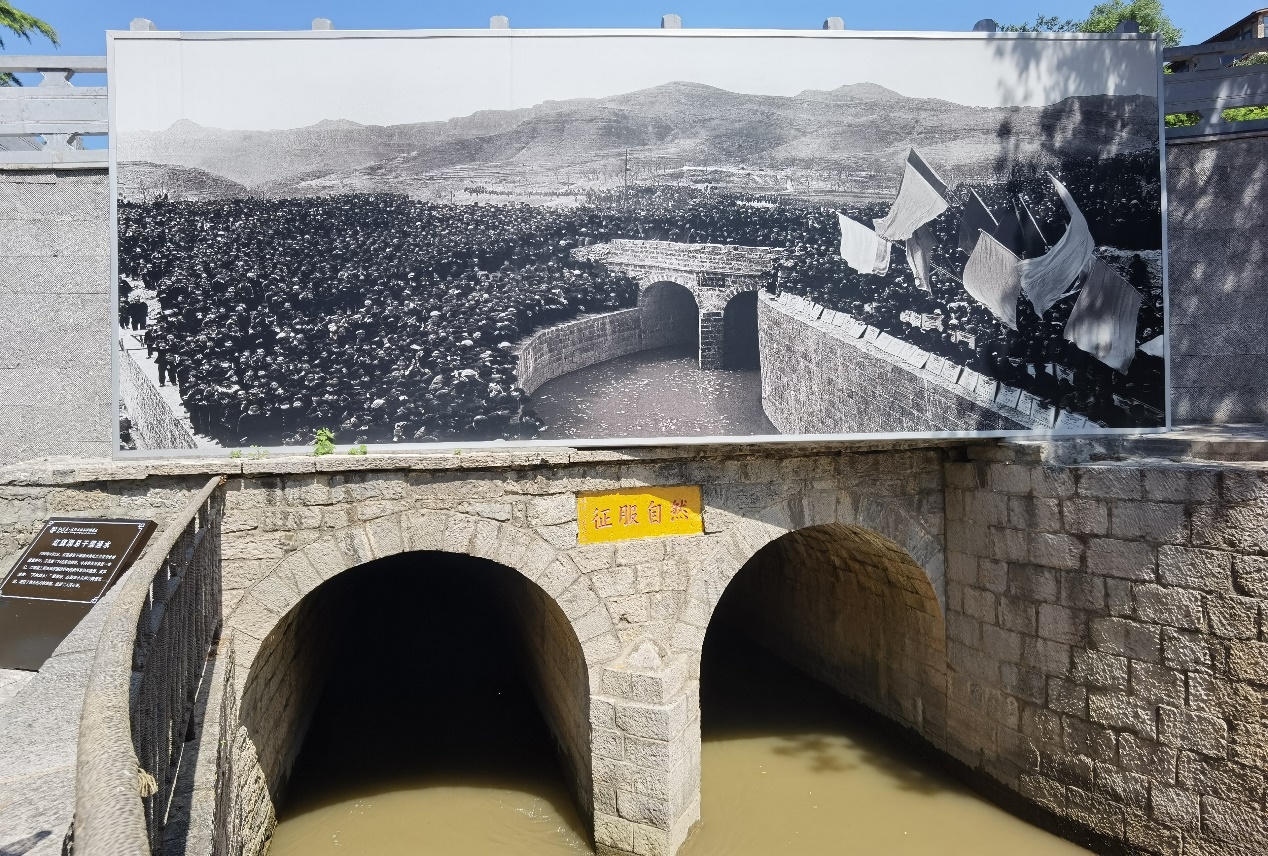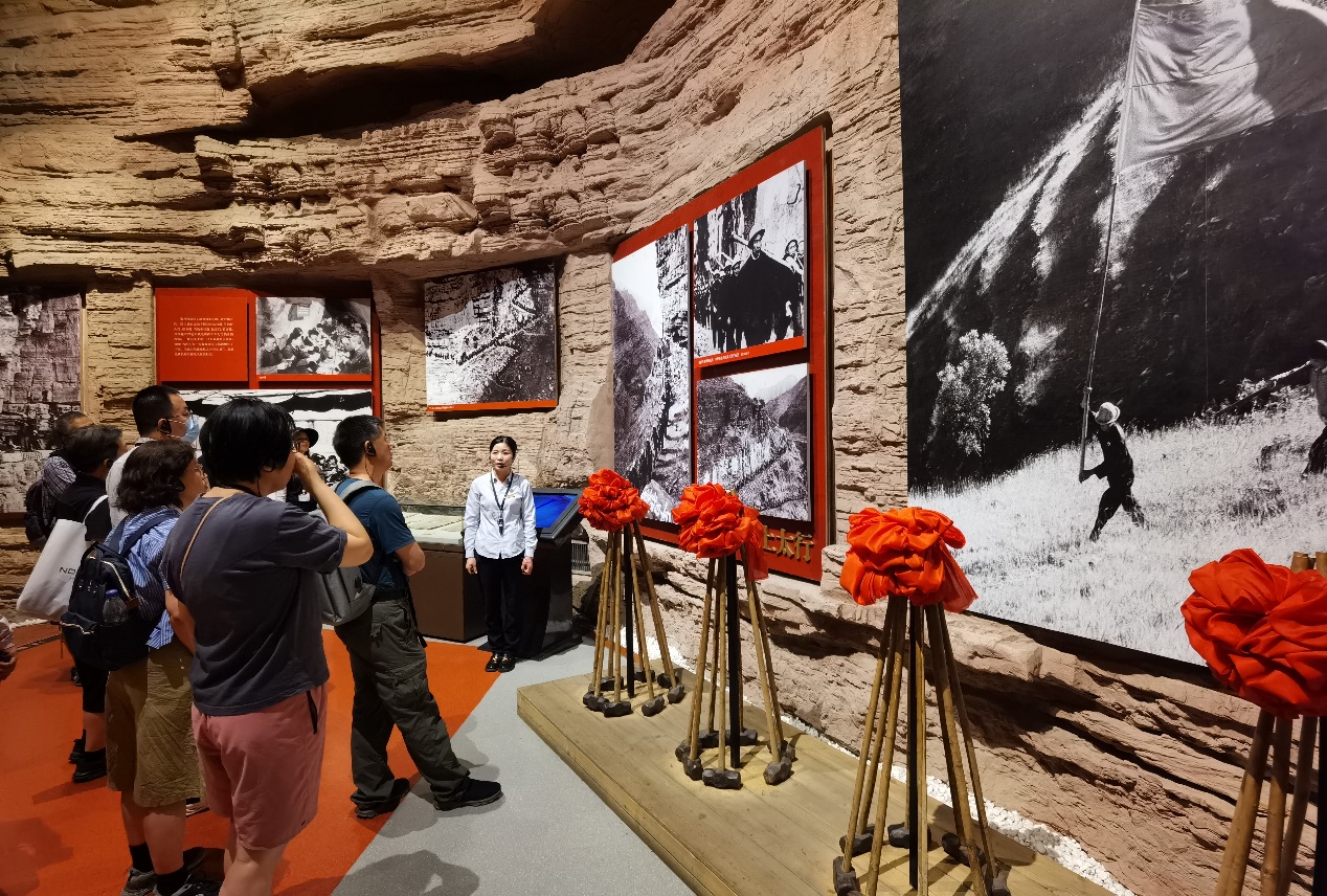党员教师们首先参观了红旗渠分水闸,她是红旗渠总干渠的分水枢纽工程,也是红旗渠上的十大工程之一。全长70.6公里的红旗渠总干渠,由分水闸一分为三条干渠,一干渠流向西南方向、二干渠流向东南方向、三干渠流向东北方向,彻底解决了林州千百年来的缺水问题。1965年4月5日,红旗渠总干渠通水典礼在分水闸举行,透过黑白照片,看到的是一张张欢呼雀跃的笑脸,仿佛能够听到那一声声激动人心的呐喊。58年前,人们在这里欢庆渠成,58年后的今天,精神之河依旧奔流不息。