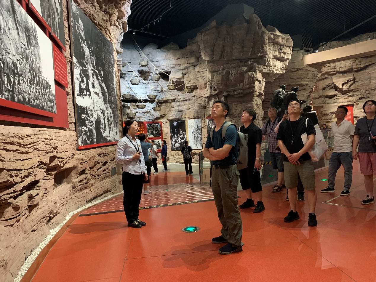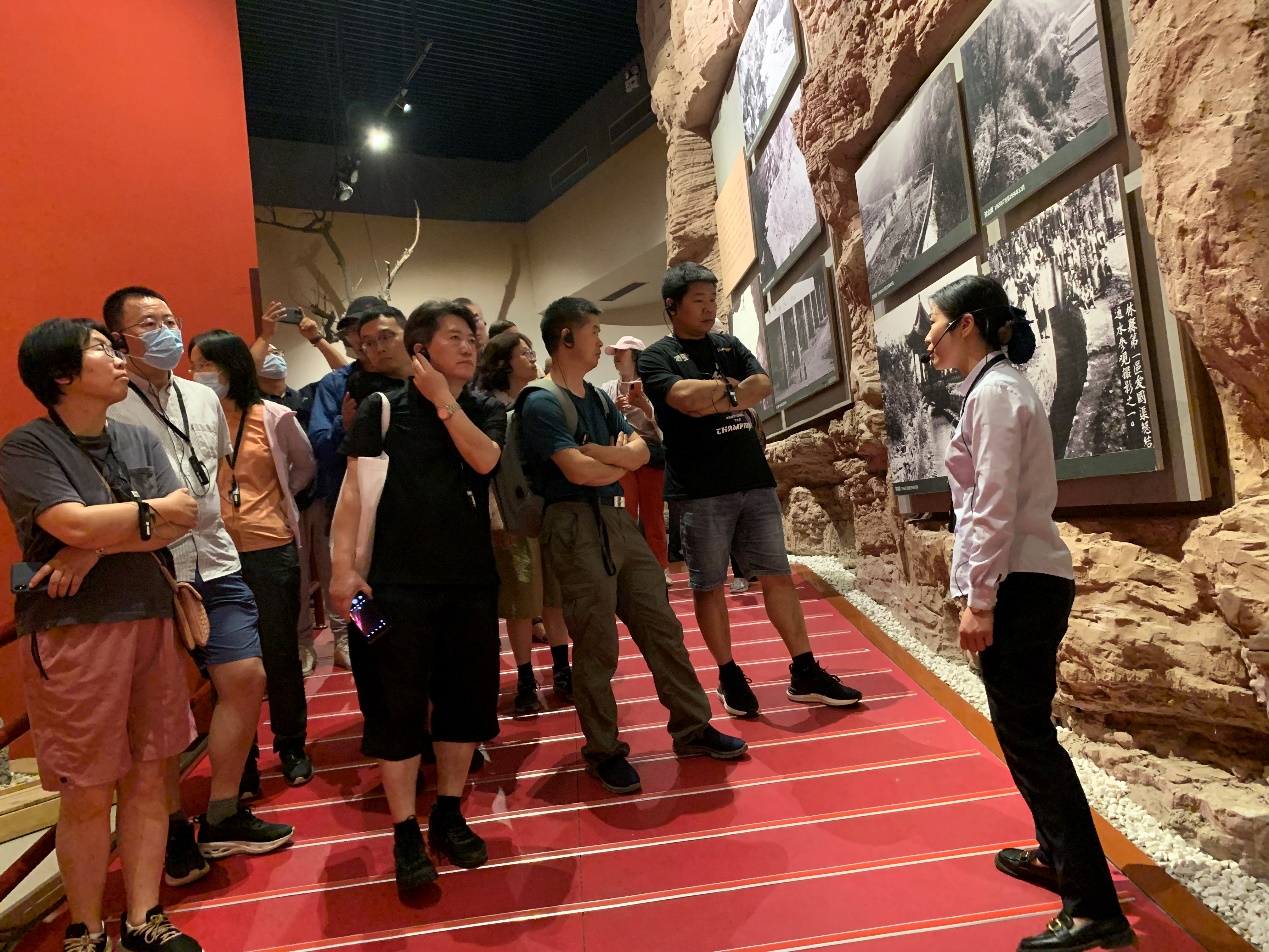 感受了红旗渠分水闸的伟大工程之后,队伍集体参观了红旗渠纪念馆。纪念馆的展览学习内容分为五个部分:千年旱魔,世代抗争;红旗引领,创造奇迹;英雄人民,太行丰碑;山河巨变,实现梦想;继往开来,精神永恒。全方位、多角度展示了林州人民在社会主义建设时期苦战10年改造山河的壮举,突出表现红旗渠精神的形成、发展和历史传承。一尊尊栩栩如生的雕像,一篇篇记录历史的厚重文字、一段段凝练伟大精神的珍贵影像,追忆峥嵘岁月,重温红色历史,汲取奋进力量。党员教师们深刻了解到红旗渠从设计、施工到通水的艰辛与不易,怀着无比崇敬的心情,感受着修渠人的伟大。