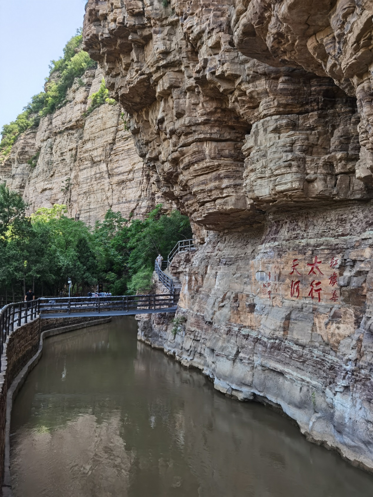 之后,党员教师们徒步迈向青年洞,在狭窄悠长、高耸入云的石道上,切身感受林州人民“劈开太行山、漳河穿山来”的艰辛与豪迈,在实情实景中感悟红旗渠精神。登临青年洞,行走在不足两米宽的渠墙上,向前不见渠头,向后不见渠尾,抬头是陡立峭壁,俯首是数丈深渊,于不经意间,仿佛与修渠英雄们并肩前行,已走过了英雄们走过的路,号角嘹亮、开山劈石、勇往无前的英雄的形象已凝固为雕像,融入太行山脉。