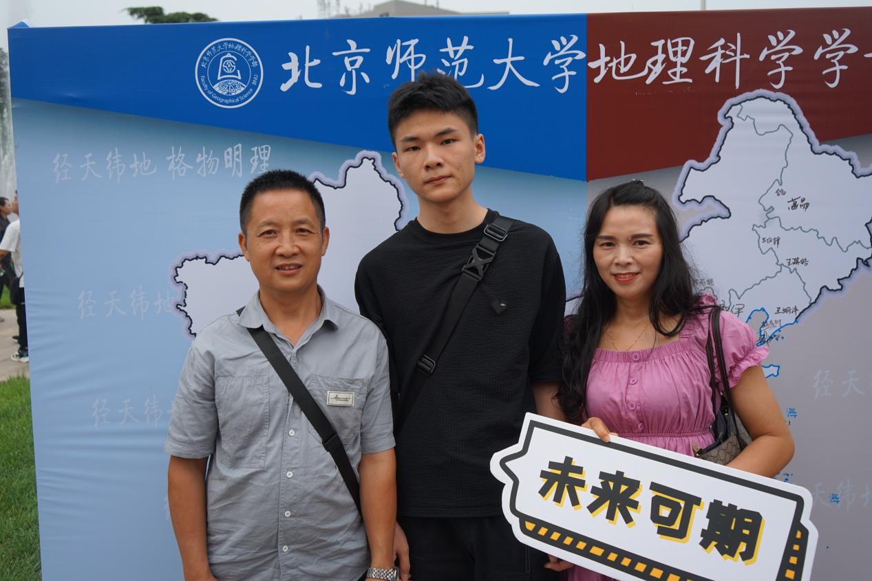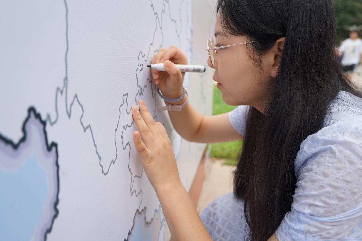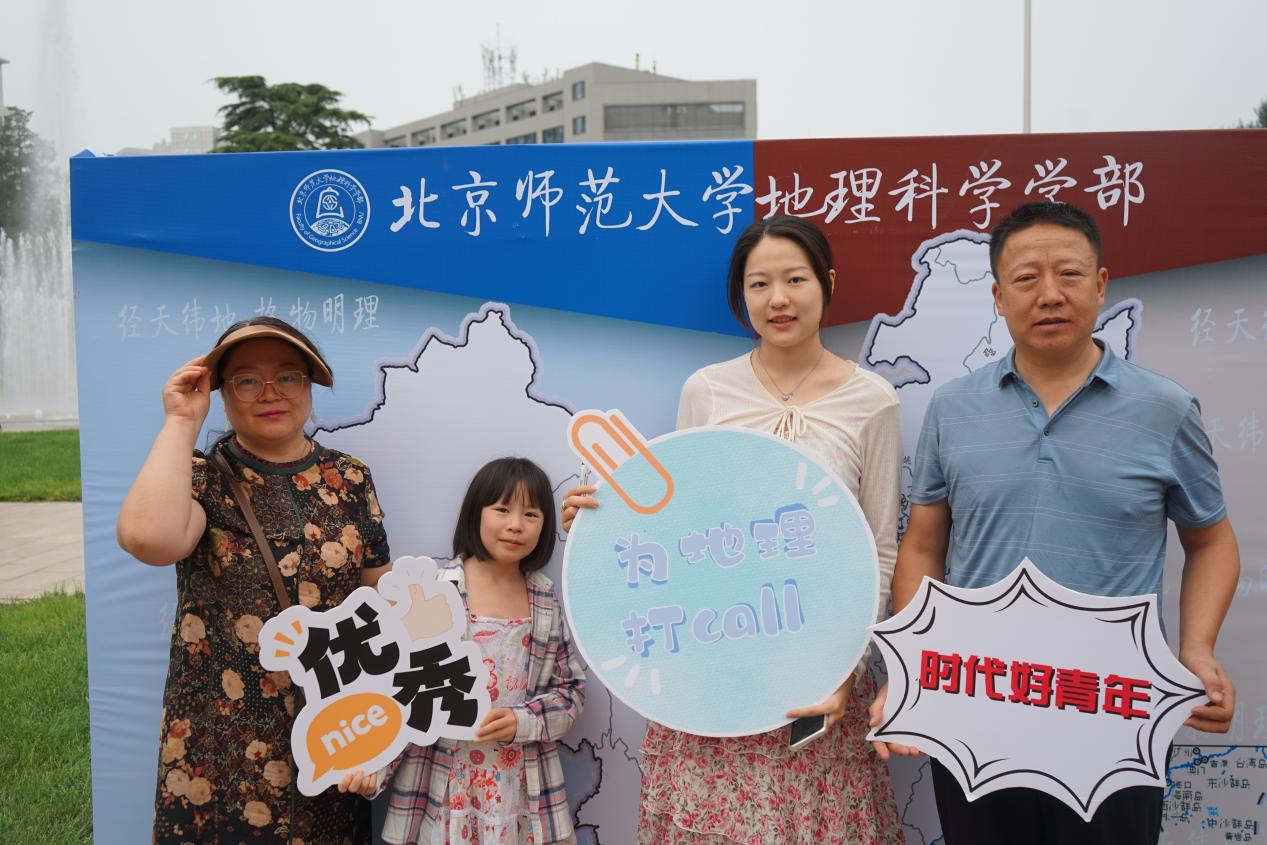整个迎新仪式最引人注目的还属这张“地理迎新墙”啦!来自五湖四海的新生们纷纷在自己的家乡所在地签上了自己的名字,他们代表着自己的家乡,展现着各自的风采。萌新们热情地邀请自己的家人合影一张,手持“BNU地理人”、“未来可期”、“我爱北师大”等等标语,表明了对未来的期待,开启生活新篇章。