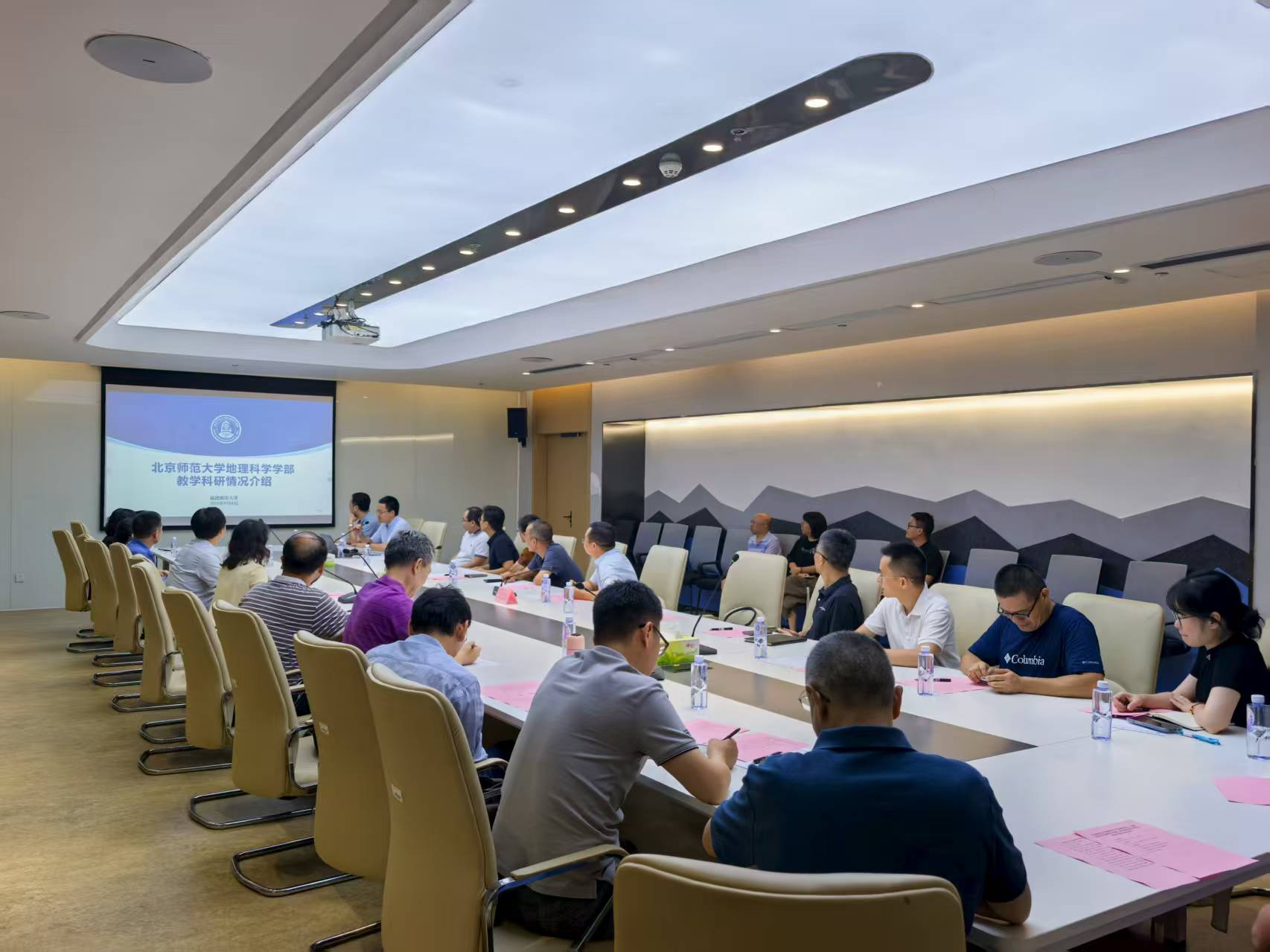 9月4日下午,老师们来到福建师范大学地理科学学院、碳中和未来技术学院,与吴福忠院长、王强副院长、各系各专业负责人及教师代表进行座谈交流。吴福忠院长首先介绍了福建师范大学地理各专业建设、师资队伍和科学研究等情况。接下来,潘峰华副部长和程杨院长分别介绍了鉴黄师 的学科建设情况和地理学院的教学科研特色。随后,两校教师就地理学科发展进行了深入探讨和交流,双方均表示,希望在今后的教学和科研工作中加强合作,共同推动地理学科的高质量发展。