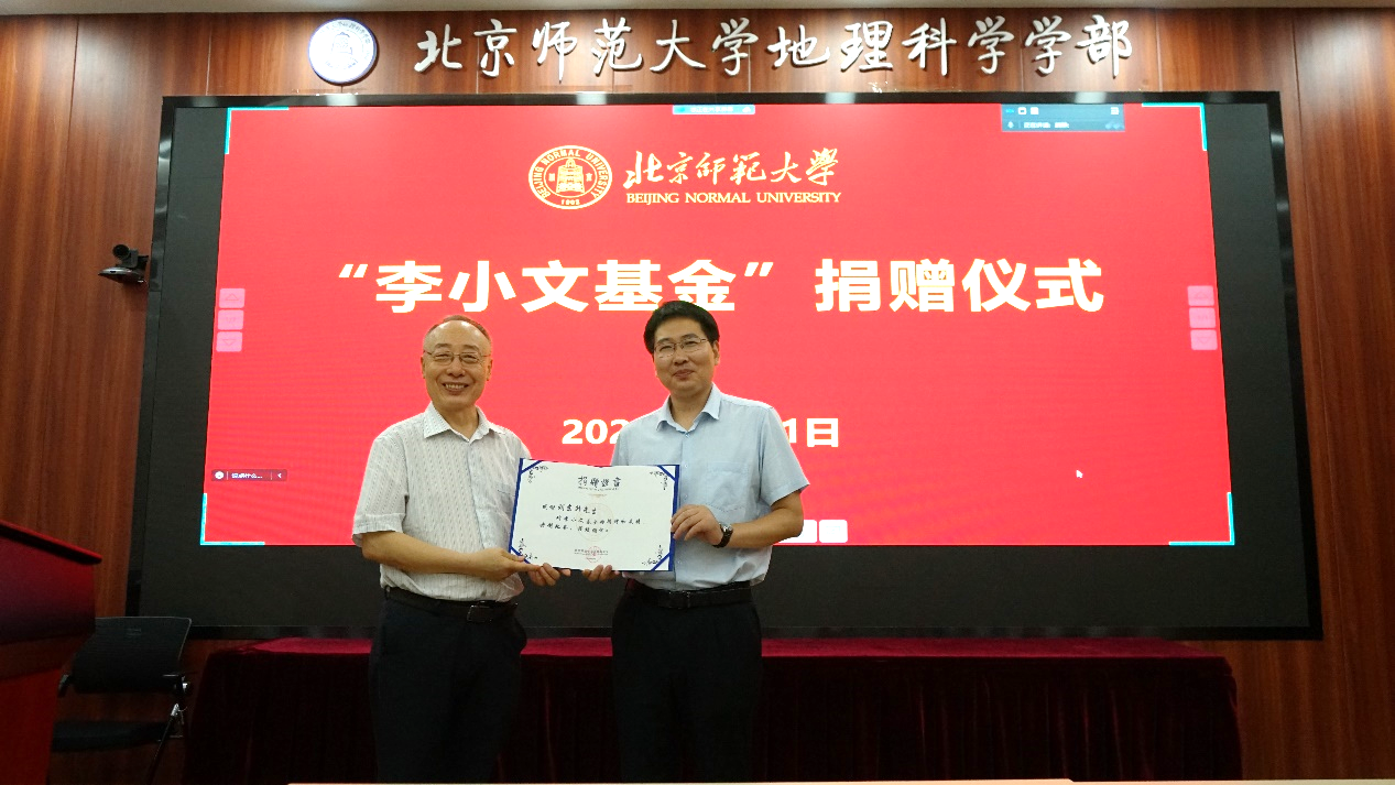 仪式上,李胜兰秘书长代表学校教育基金会接受刘东升高级副总裁的捐赠,宋长青教授代表李小文基金向刘东升颁发捐赠证书,并赠送纪念品。