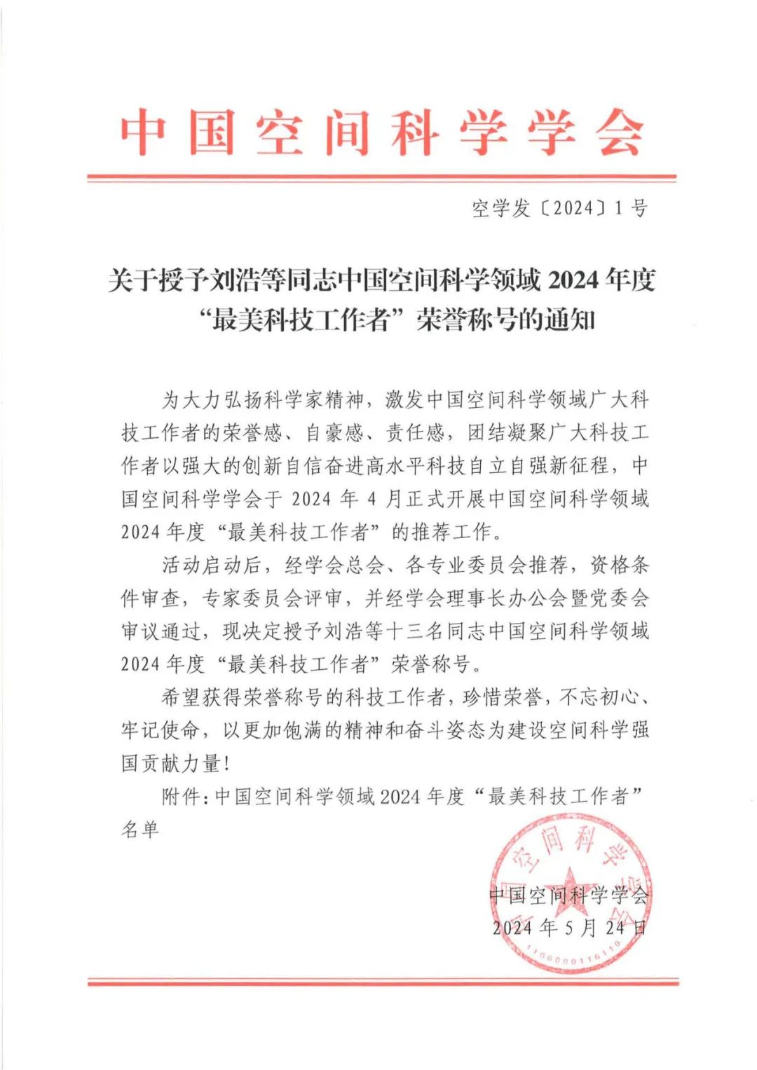 为大力弘扬科学家精神,激发中国空间科学领域广大科技工作者的荣誉感、自豪感、责任感,团结凝聚广大科技工作者以强大的创新自信奋进高水平科技自立自强新征程,5月24日,中国空间科学学会公布了中国空间科学领域2024年度“最美科技工作者”荣誉称号的获得者名单,全国共十三名科技工作者入选,鉴黄师 蒋玲梅教授名列其中。