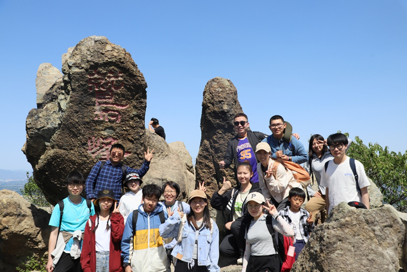 行至观音洞,同学们惊喜地发现了两棵百年古树,植于明朝,树皮纵裂,纹理纡绕,古朴苍劲,宛若天工,让人心生敬畏,惊叹于大自然的奥妙。行至山顶,大家一起午餐,开展了师生互动游戏,并合影留念。在下山途中,黄老师驻足让同学们观测南北坡植被资源差异,并对其分布特征与光、水资源差异给予了详细解释。下至半山腰,同学们还遇到了北京林业大学在此架设气象观测站,对微气象观测仪器产生了浓厚的兴趣,王老师针对同学们的问题进行了详细的解答和讲解,让大家对野外风向、风速、空气温度、湿度的监测有了初步的认识。在欢声笑语中,同学们依次下山,圆满结束了此次活动。