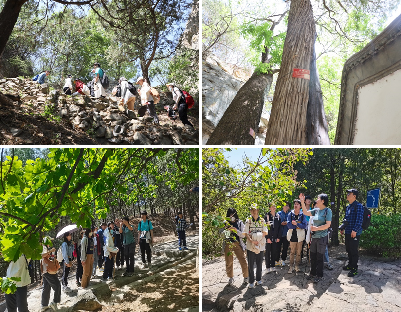 黄老师一开始以北京低山森林典型针叶树种侧柏、油松为例,向大家讲解了这些树木的分类学特征,以及在我国和北京的分布规律,让大家对此产生了浓厚的兴趣。接着,在攀登鹫峰的过程中,所到之处,黄老师为大家一一讲解了栾树、栓皮栎、槲栎、槲树、小叶朴和白皮松等森林树种,对于每个植物物种,我们都详细介绍了它们的根、茎、叶、花、果和食用等特征,并讲解了它们在生产和生活领域中的应用价值,让大家更好地了解每种植物的独特和美丽之处,让大家对物种多样性有了更深的了解,这些知识将对同学们未来的研究和实践产生重要的影响。