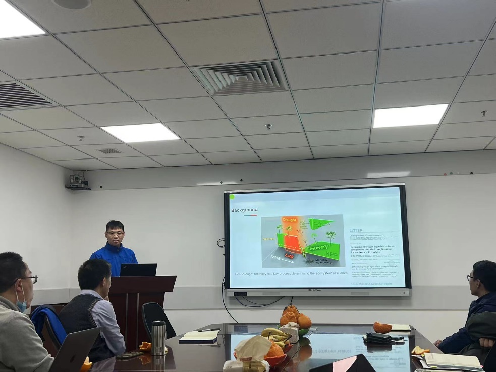于德永教授从社会-生态系统耦合的整体性出发,向在座师生介绍了联合国可持续发展目标(SDGs)视角下环境绩效与人类福祉之间的耦合关系评估框架,以中国省级行政区2000-2018年的发展为例,阐述了此评估框架下中国各省级行政区的可持续发展模式与调控策略。吴秀臣教授从“植被物候变化如何影响植被从干旱中恢复”这一问题出发,向在座师生介绍了北半球中高纬度生态系统植被在经历干旱后恢复的两种主要模式,指出植被物候的生物延滞效应对植被经历干旱后恢复的重要影响。在座老师和学生在两位老师报告后进行了热烈的讨论。